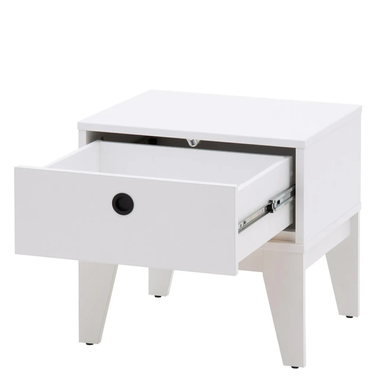 Biała szafka nocna FEMII pasuje do każdego młodzieżowego pokoju. Dobrze mieć ją po swojej stronie.