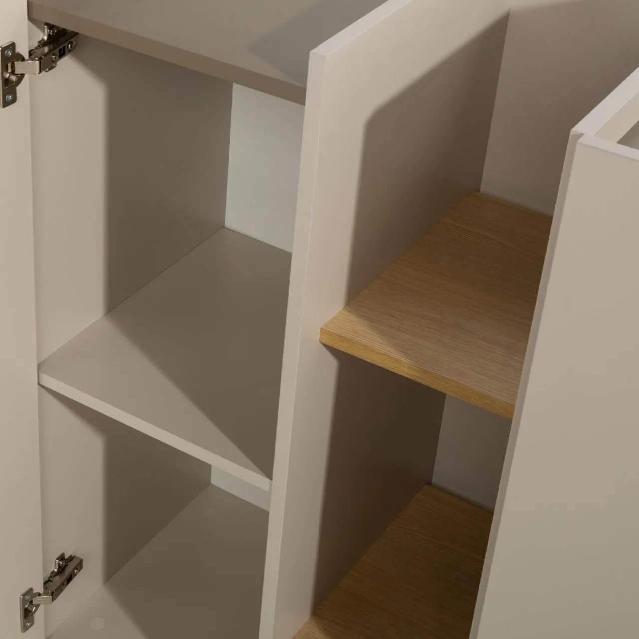 - Za drzwiami znajdują się 4 wnęki, które pozwolą Ci posegregować dokumenty czy ubrania.