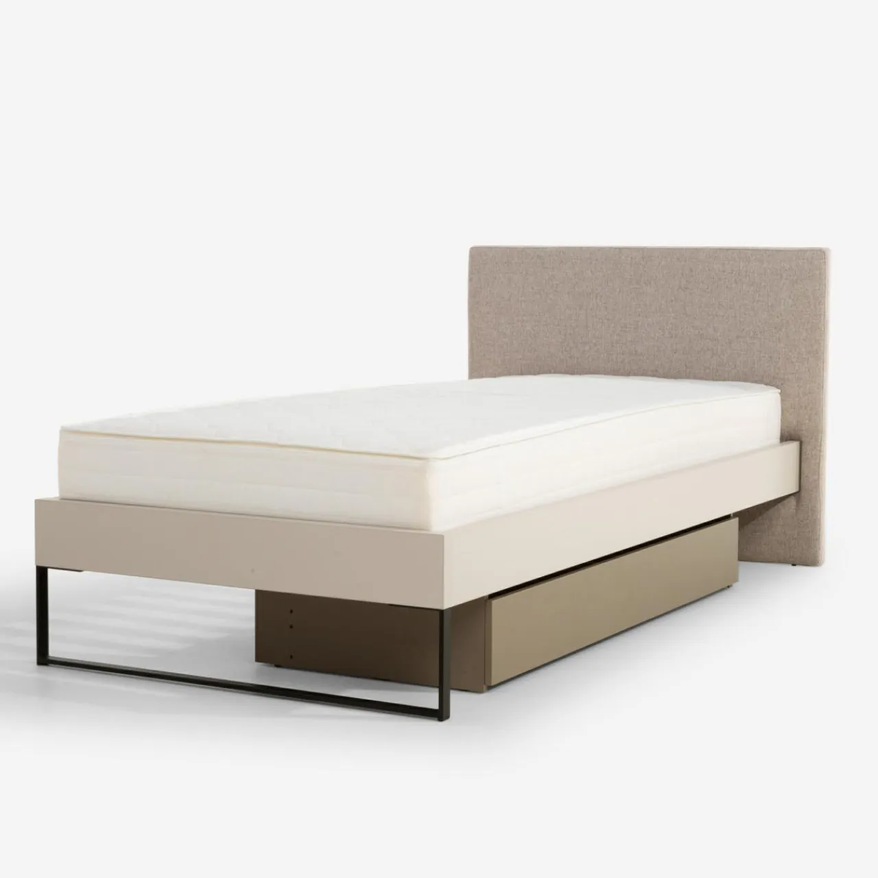 Stwórz przytulną sypialnię z łóżkiem SIGMA. Gładkie beżowe i truflowe powierzchnie harmonijnie łączą się z tapicerowanym wezgłowiem. Sypialnie zyskuje przytulny i ciepły klimat.