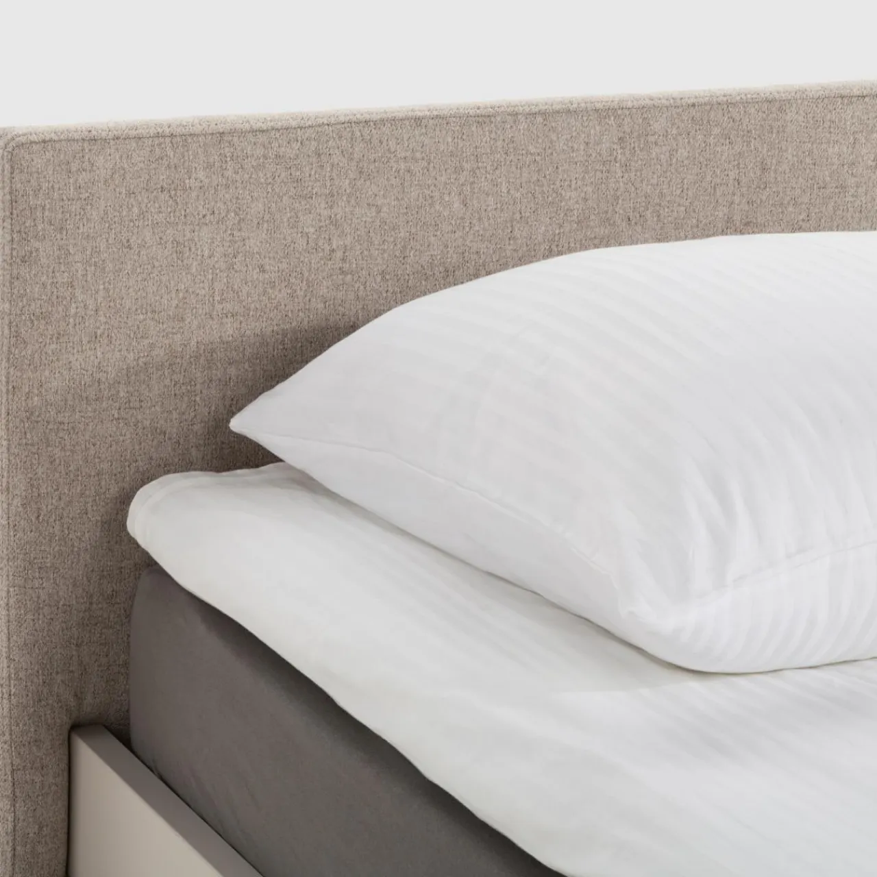 Tkanina NEVE na wezgłowiu cechuje się łączeniem beżowych i brązowych nitek, tworząc ciekawy akcent w sypialni.