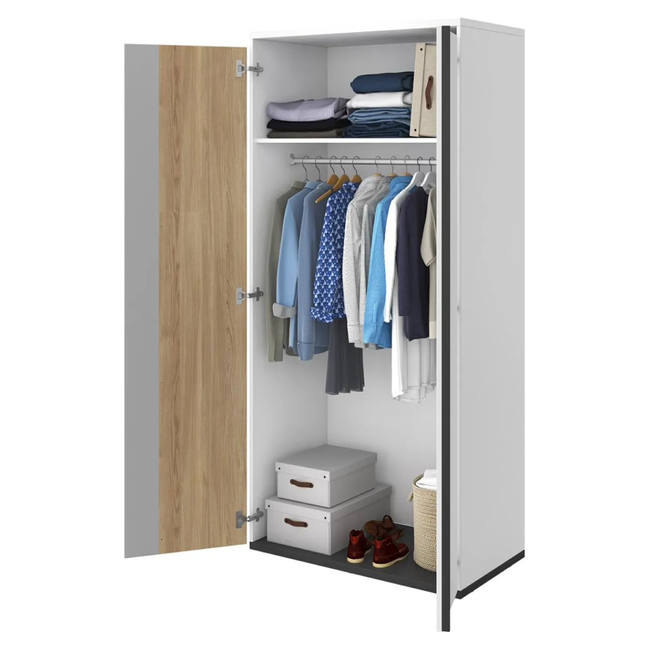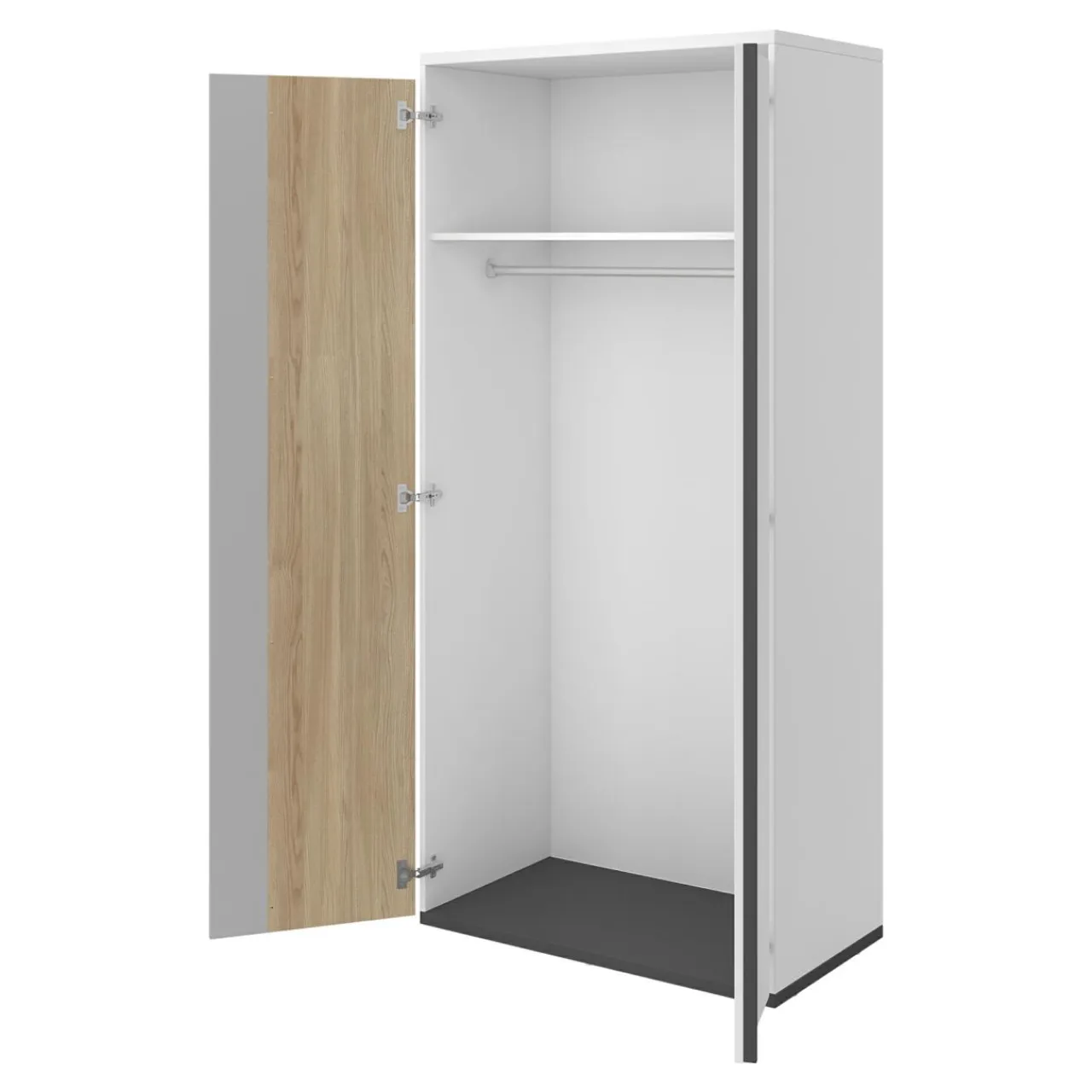 Szafa dwudrzwiowa IMOLA kryje w sobie 1 drążek na ubrania oraz 1 dużą półkę.