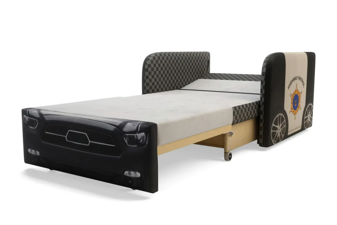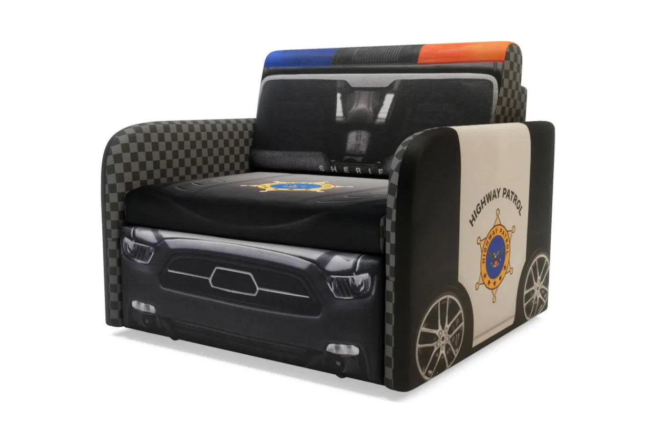 Sofa POLICE świetnie komponuje się z kolorowymi wnętrzami pokoju dziecięcego, a zastosowana w sofie tkanina jest miękka i przyjemna w dotyku.
