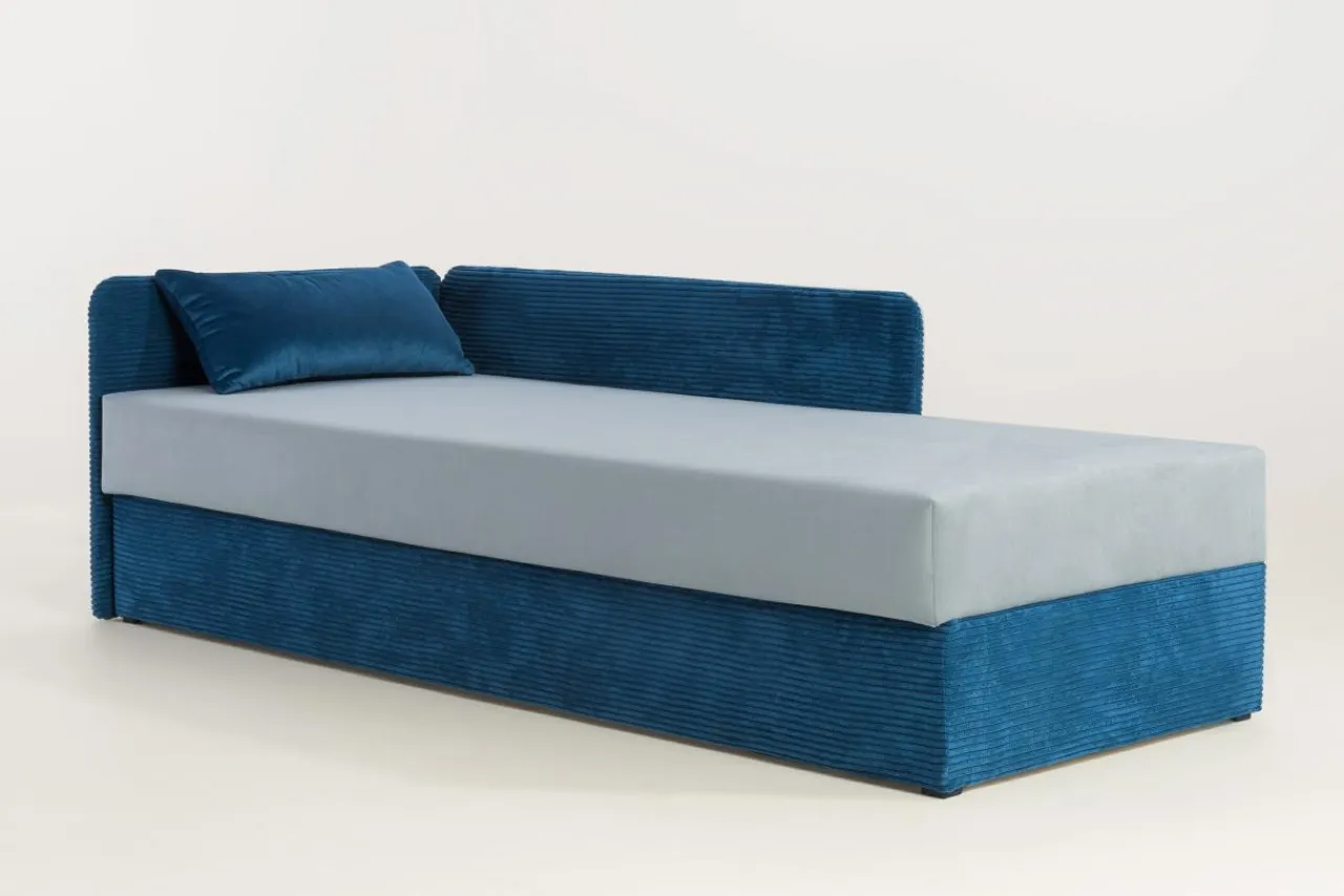 - Do tapczanu dołączona jest pluszowa poduszka w kontrastowym kolorze, która może być dekoracją albo podparciem pod głowę podczas spania.