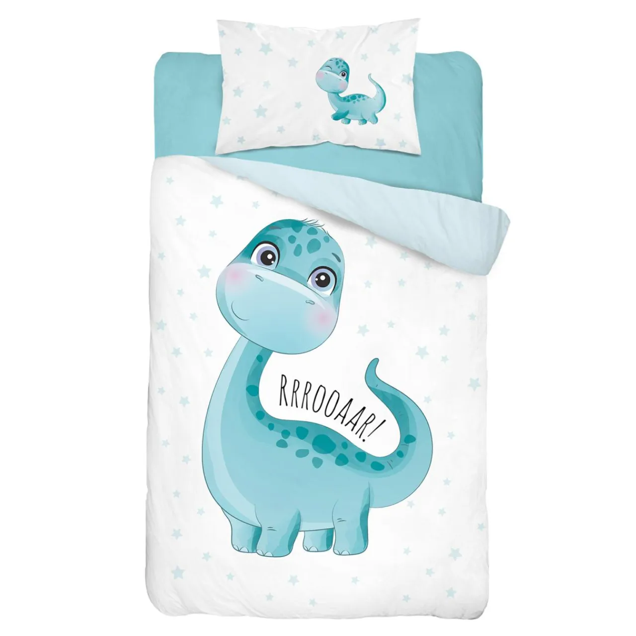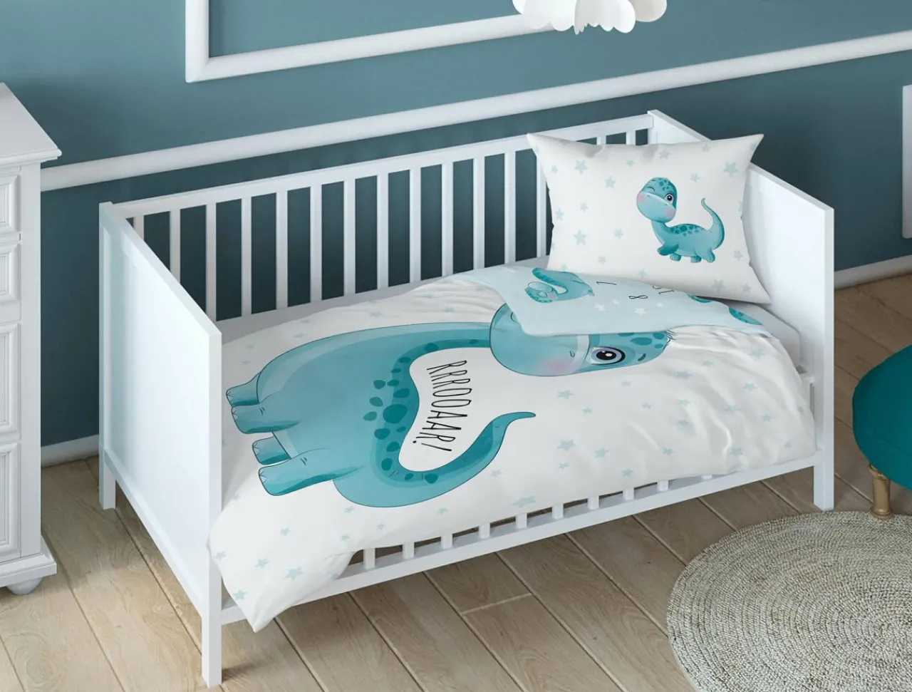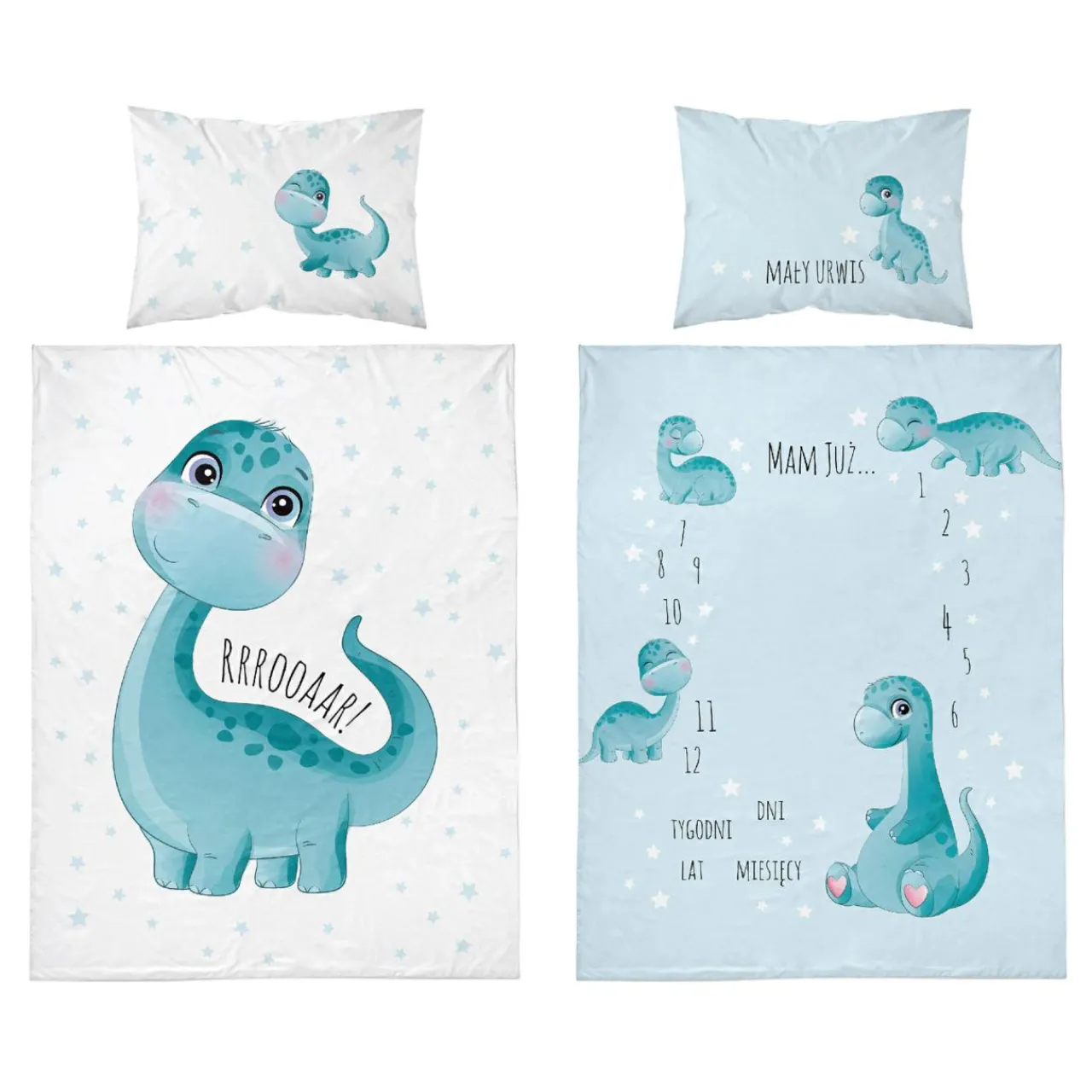 - Młody użytkownik lub użytkowniczka pościeli z pewnością docenią uroczy motyw dinozaura, który zachęca do położenia się do łóżka, by śnić o samych przyjemnych rzeczach;