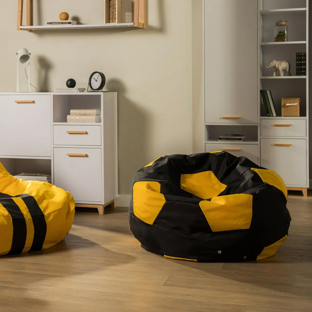 Miękki puf będzie idealnym miejscem kibicowania ulubionej drużynie podczas meczu lub grania w gry po szkole.