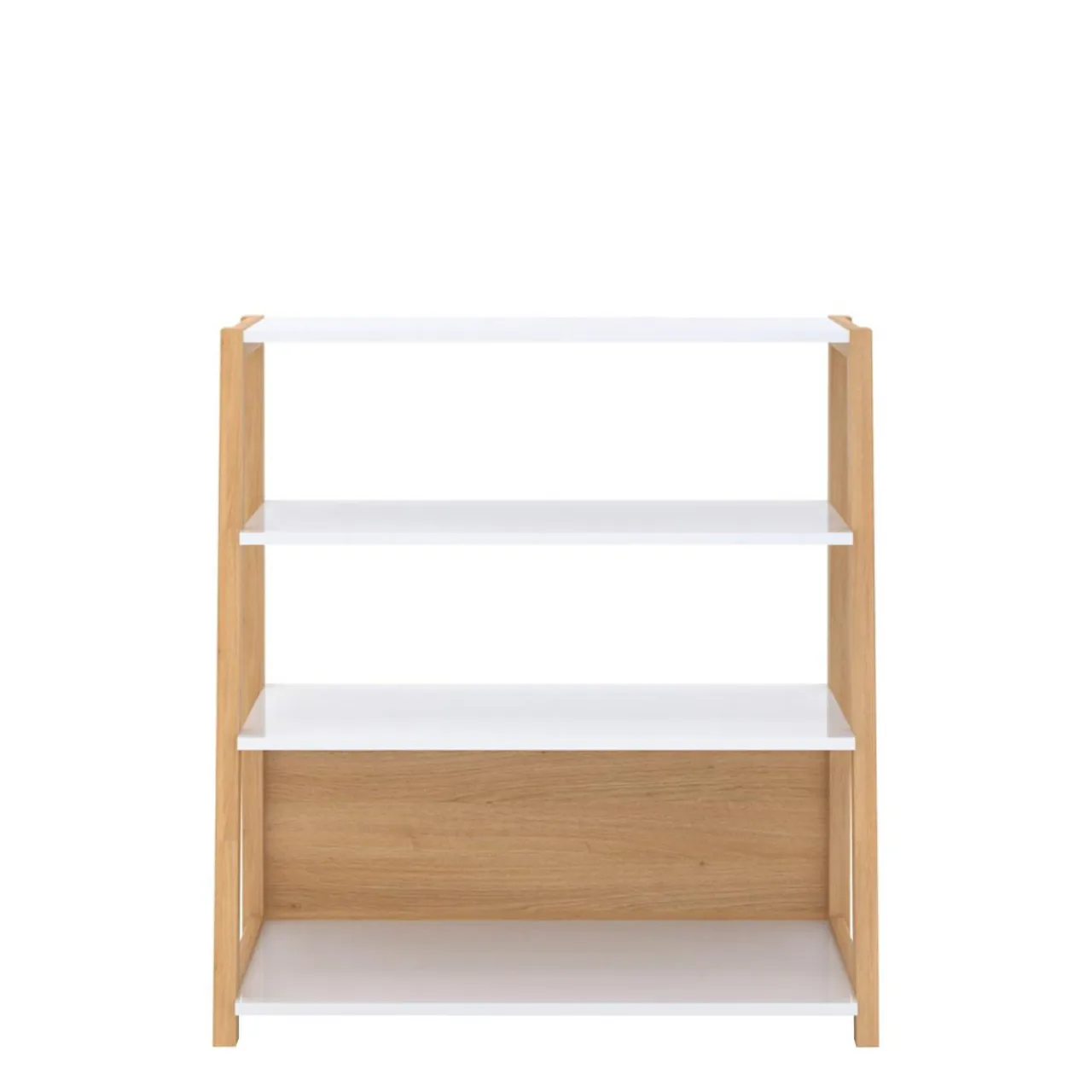 - Półki są zaprojektowane w formie drabinki. Każda półka posiada inną głębokość, zmniejszającą się ku górze.