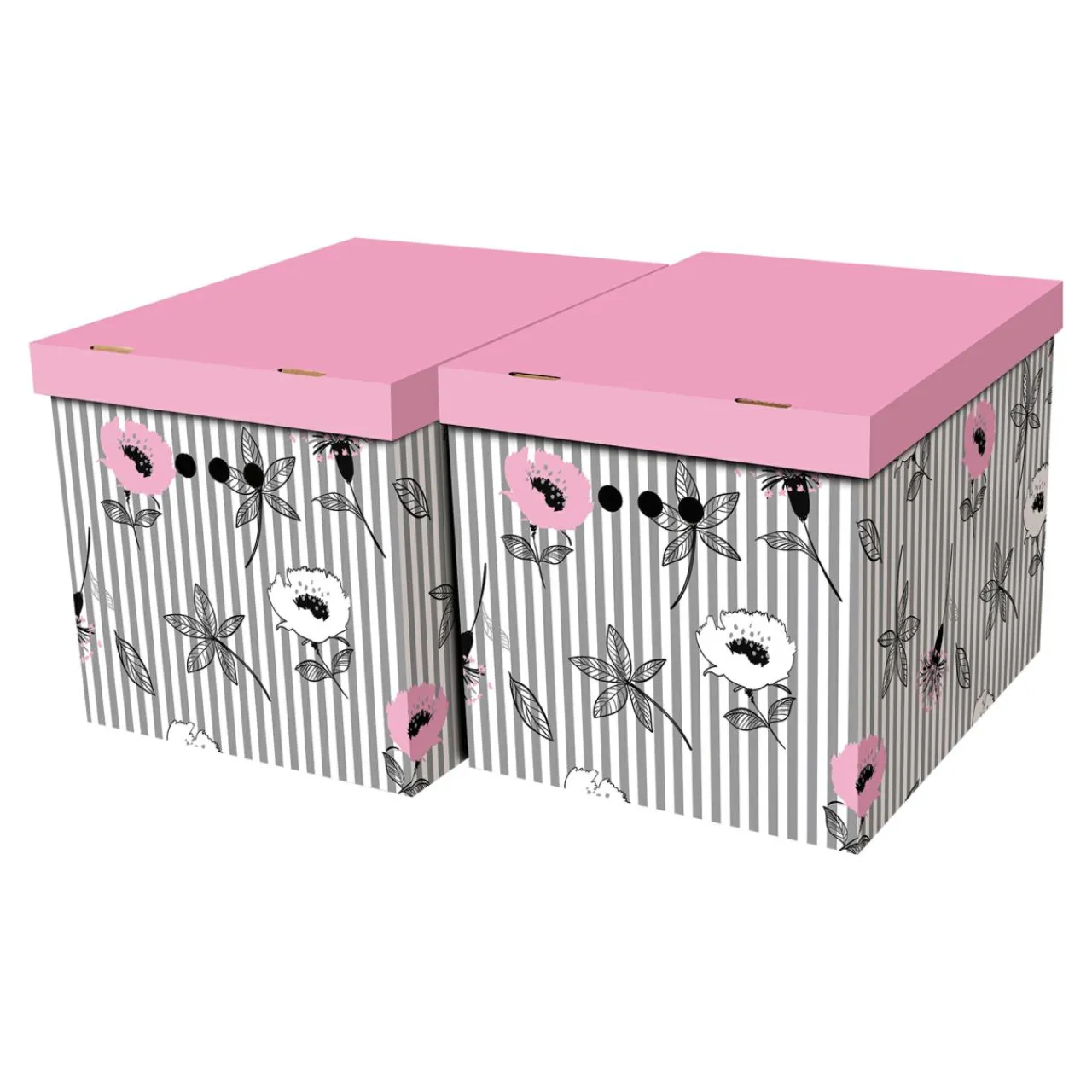 ERKAR OPAKOWANIA SP. Z O.O. Komplet 2 pudełek tekturowych KWIAT RÓŻOWY PASKI XL