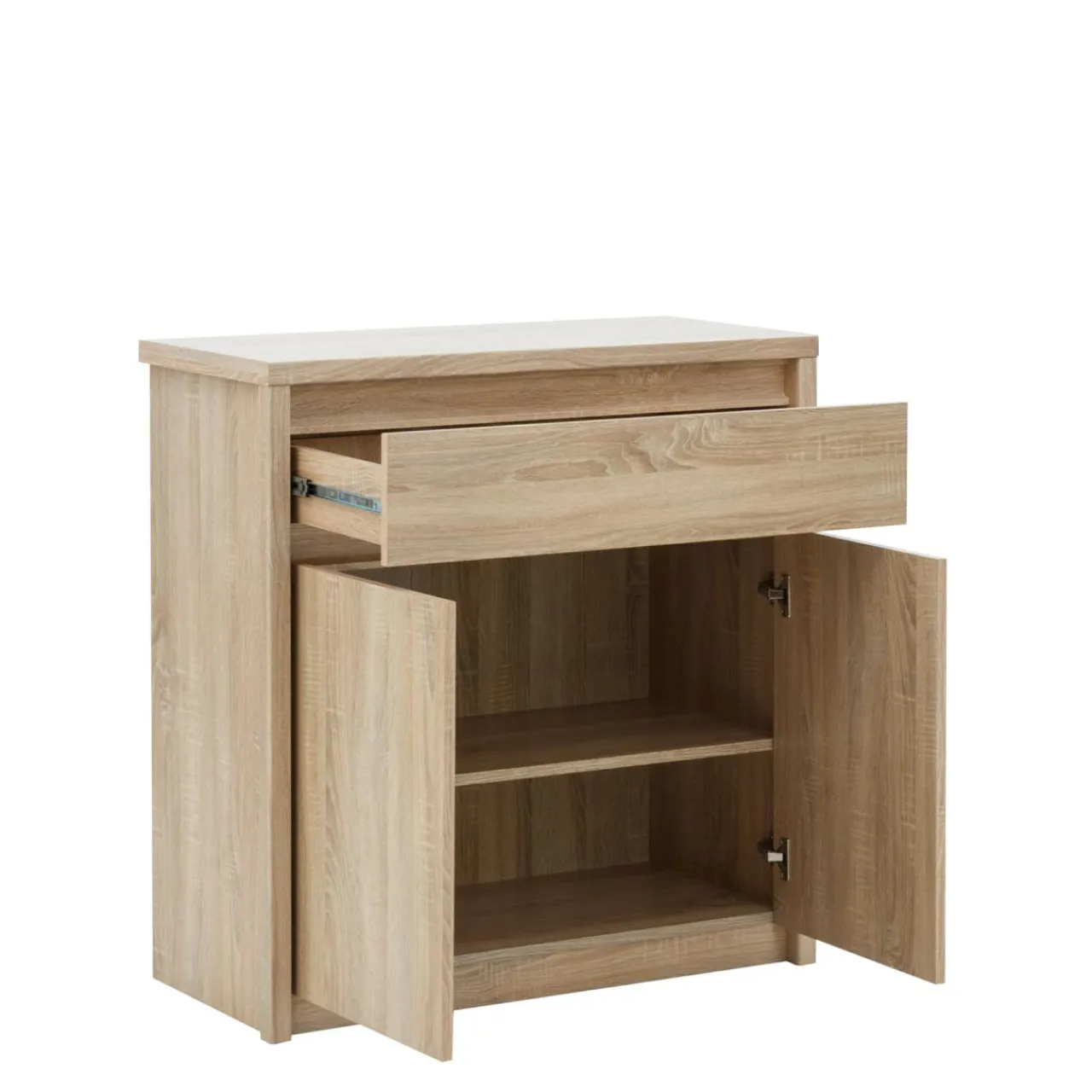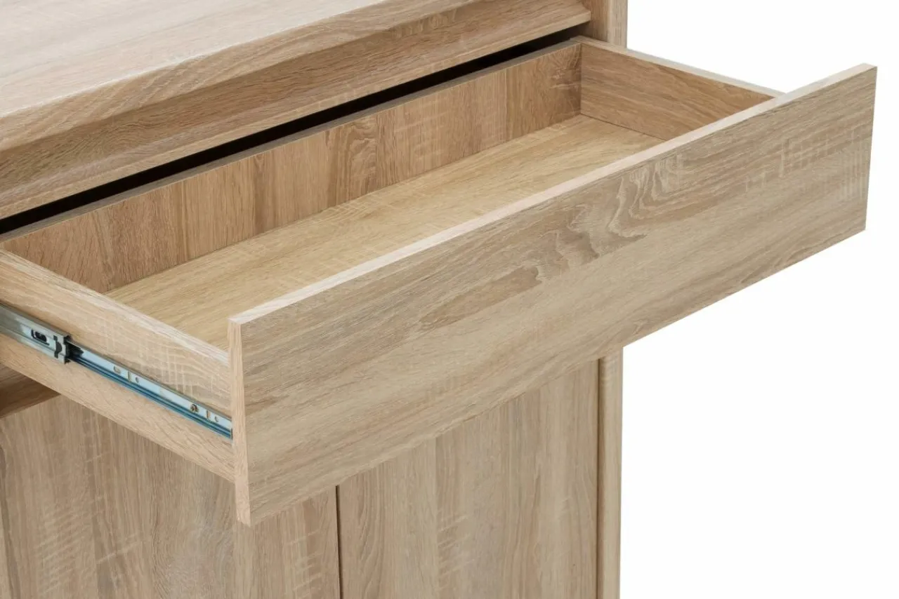 W szafkach i szufladzie przechowasz wszystko, co chcesz uporządkować i zawsze mieć pod ręką. Dzięki kulkowym prowadnicom z pełnym wysuwem docenisz komfort użytkowania mebla.