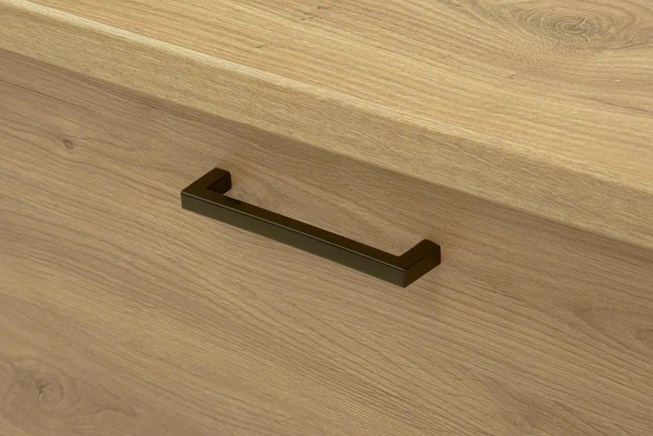 - Korpus i fronty szafki wykonane są z płyty meblowej oraz pokryte laminatem.