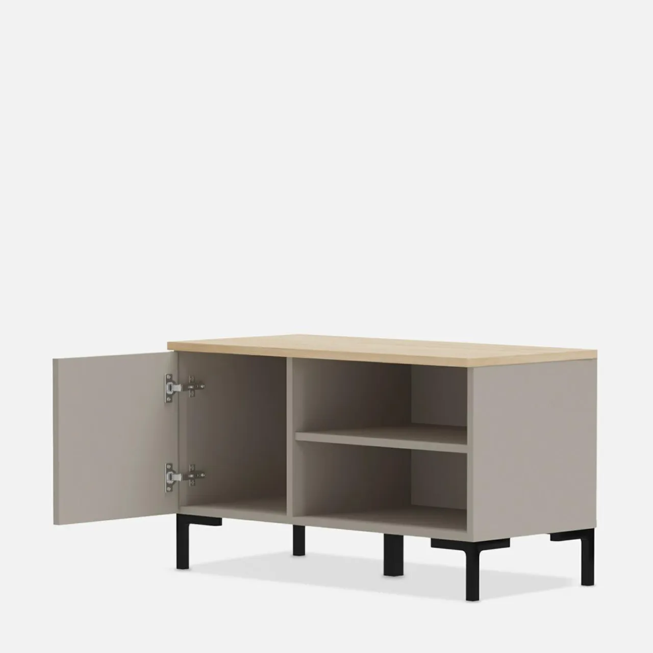 - Wszystkie bryły wykonane są w modnej kolorystyce: korpusy w ciepłym kolorze kawy z mlekiem wieńczone są blatami w wybarwieniu dąb silverjack.