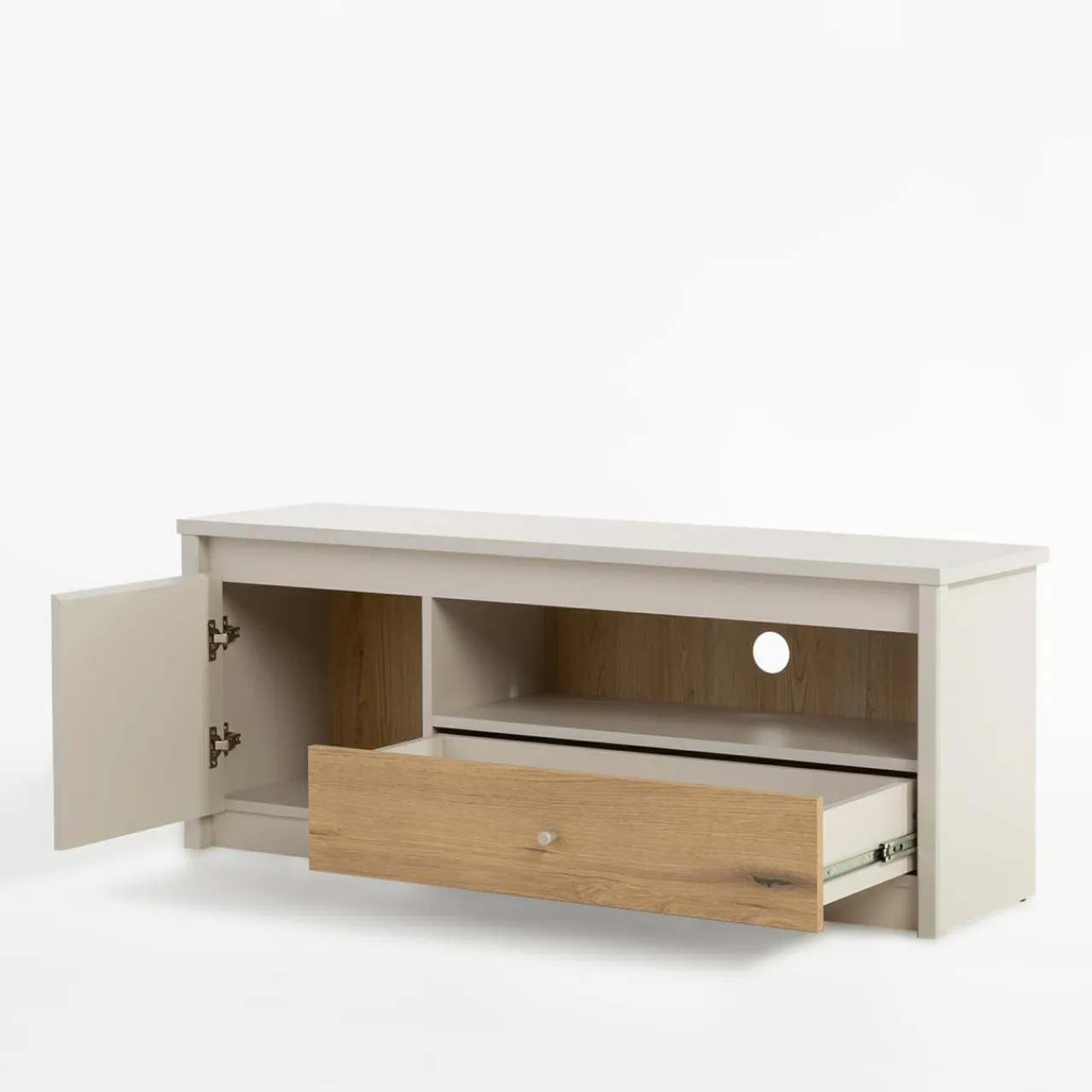 - Szuflada pozwala na dyskretne przechowywanie drobniejszych akcesoriów, takich jak piloty, kable i instrukcje.