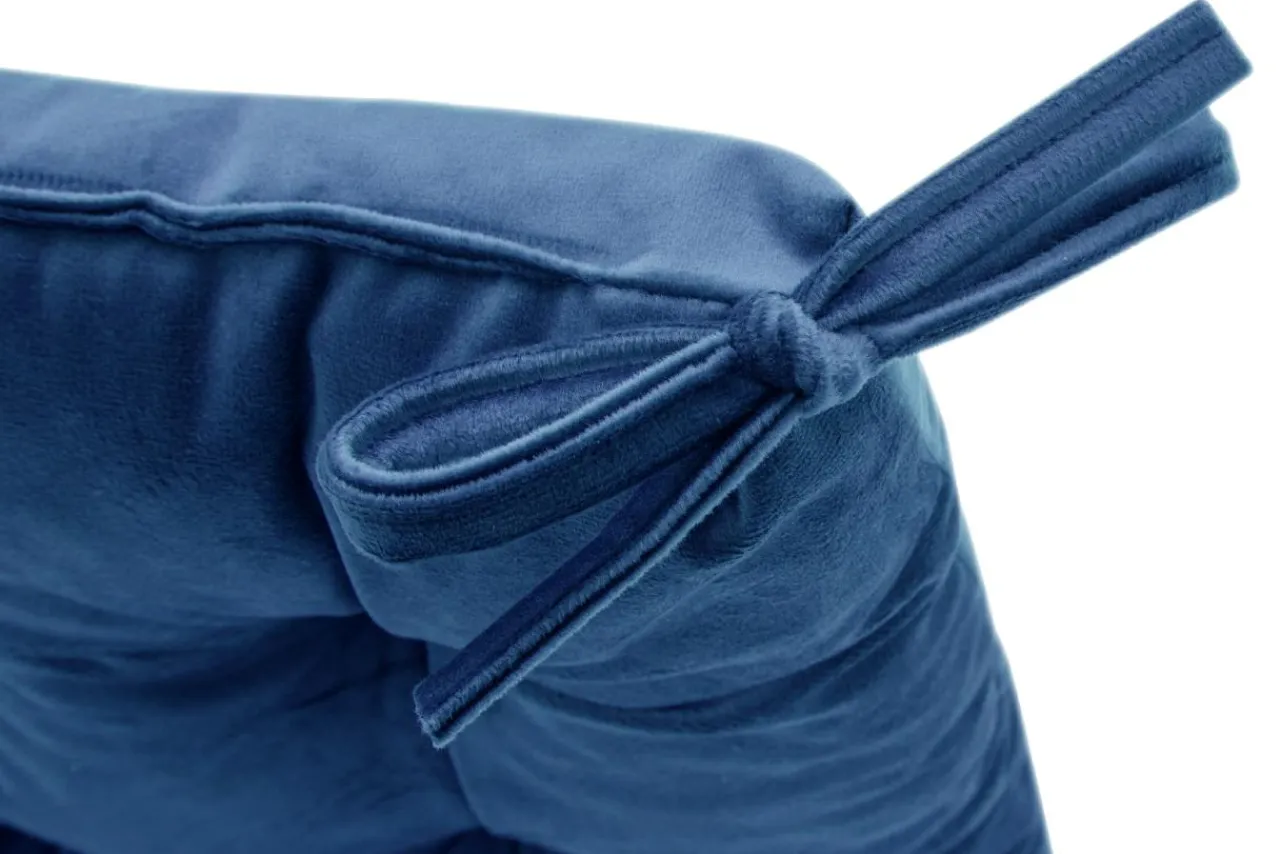 Estetyczne pikowanie i elegancka, welurowa tkanina w modnym granatowym kolorze urozmaicą aranżację kuchni, jadalni czy pokoju dziennego.