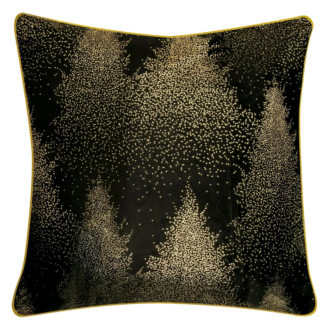 Czarna poszewka ozdobiona brokatowym nadrukiem lasu będzie pasować do Twojego salonu na co dzień i od święta.