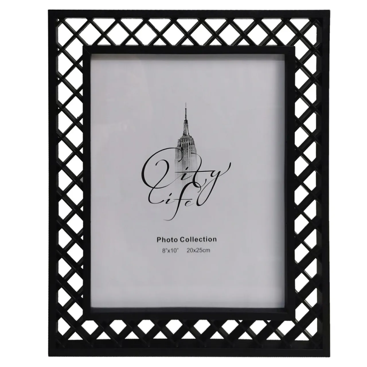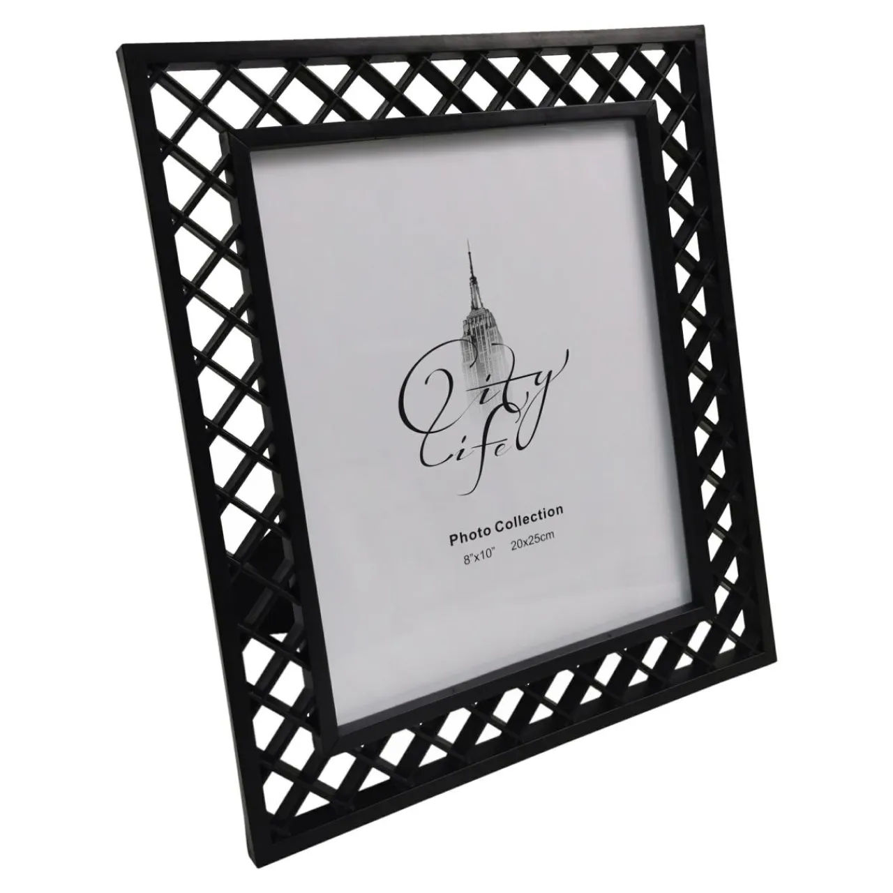 Czarna, ażurowa ramka zawieszona na ścianie stylowo odznaczy się na jednolitym, jasnym tle. Możesz także postawić ją na półce.