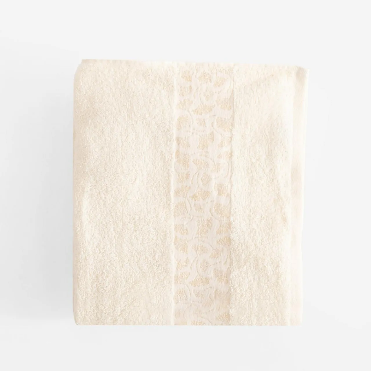 - ręcznik o wymiarach: 70×140 cm, o kremowym kolorze.