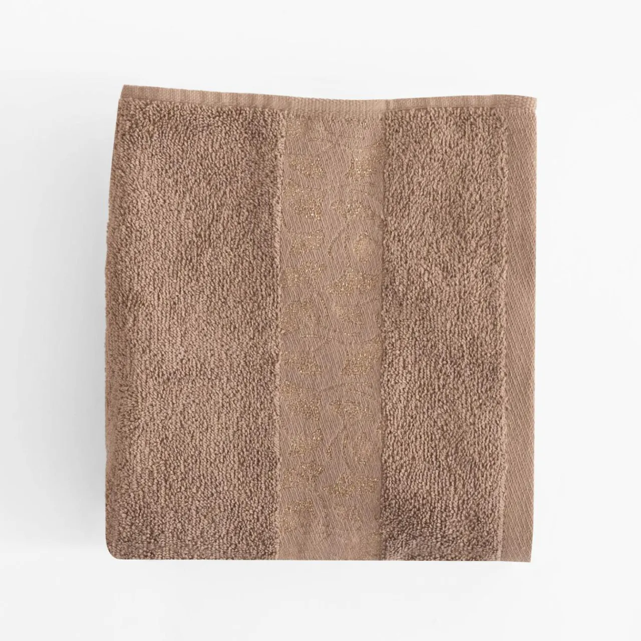 - ręcznik o wymiarach: 50×90 cm, o beżowym kolorze.
