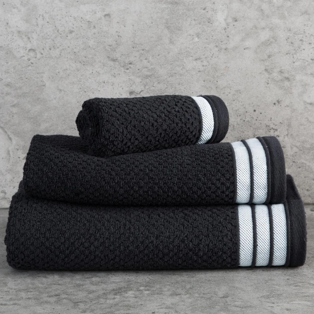 Czarny ręcznik MADLEN udekoruje łazienkę w stylu industrialnym oraz nowoczesnym. Wyróżni się także na tle jasnej aranżacji.