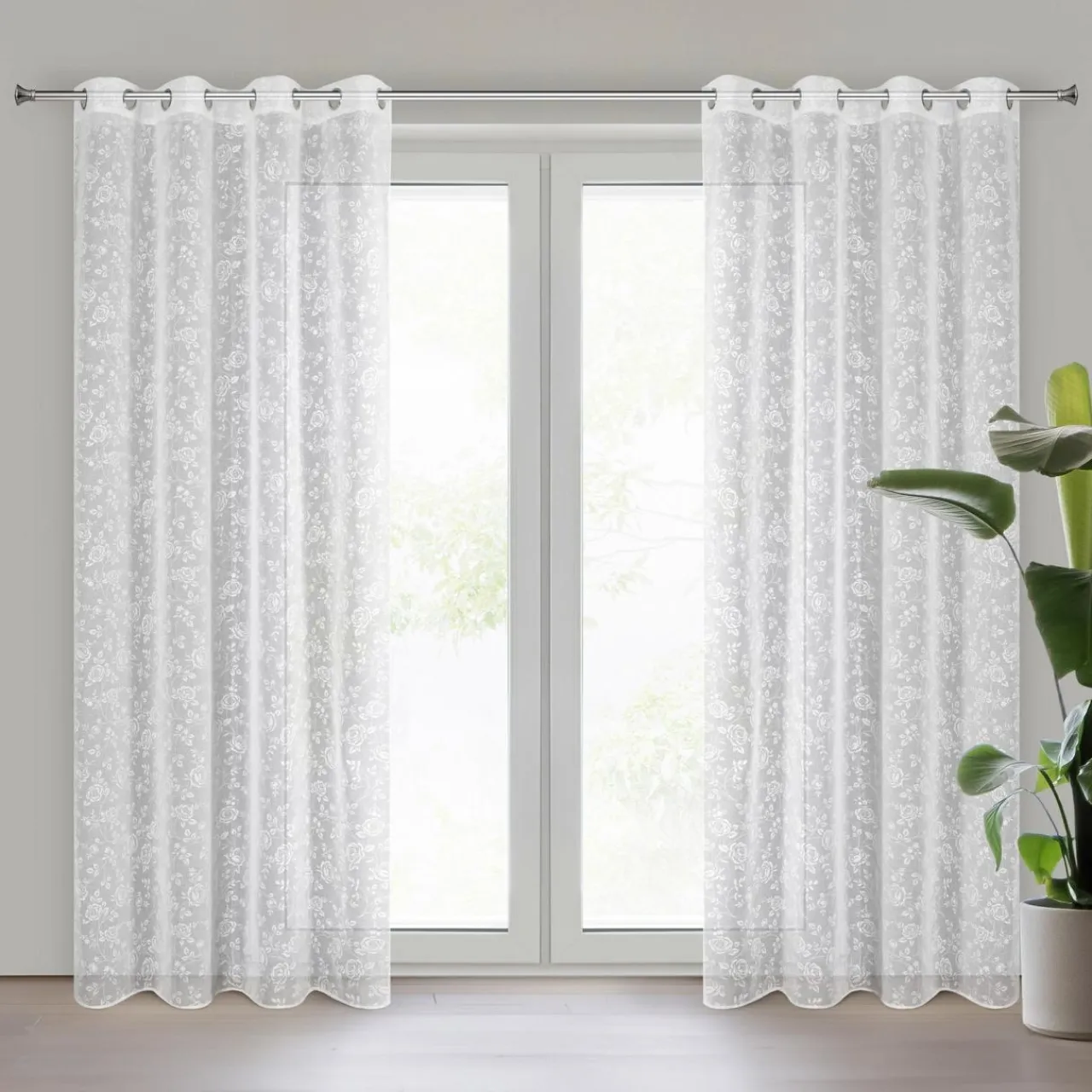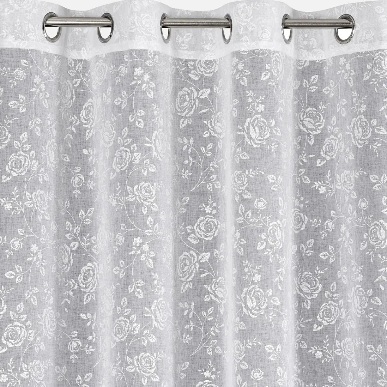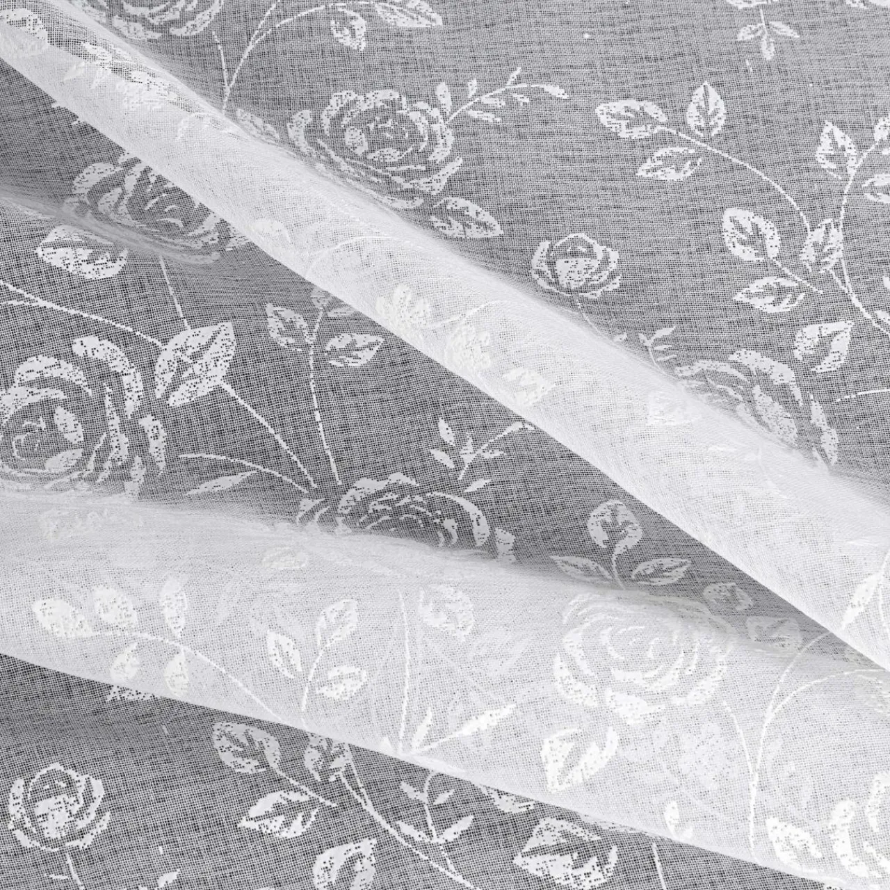 Biała zasłona na przelotkach HOLLY udekoruje Twój salon lub sypialnię. Roślinny wzór doda wnętrzu subtelności.