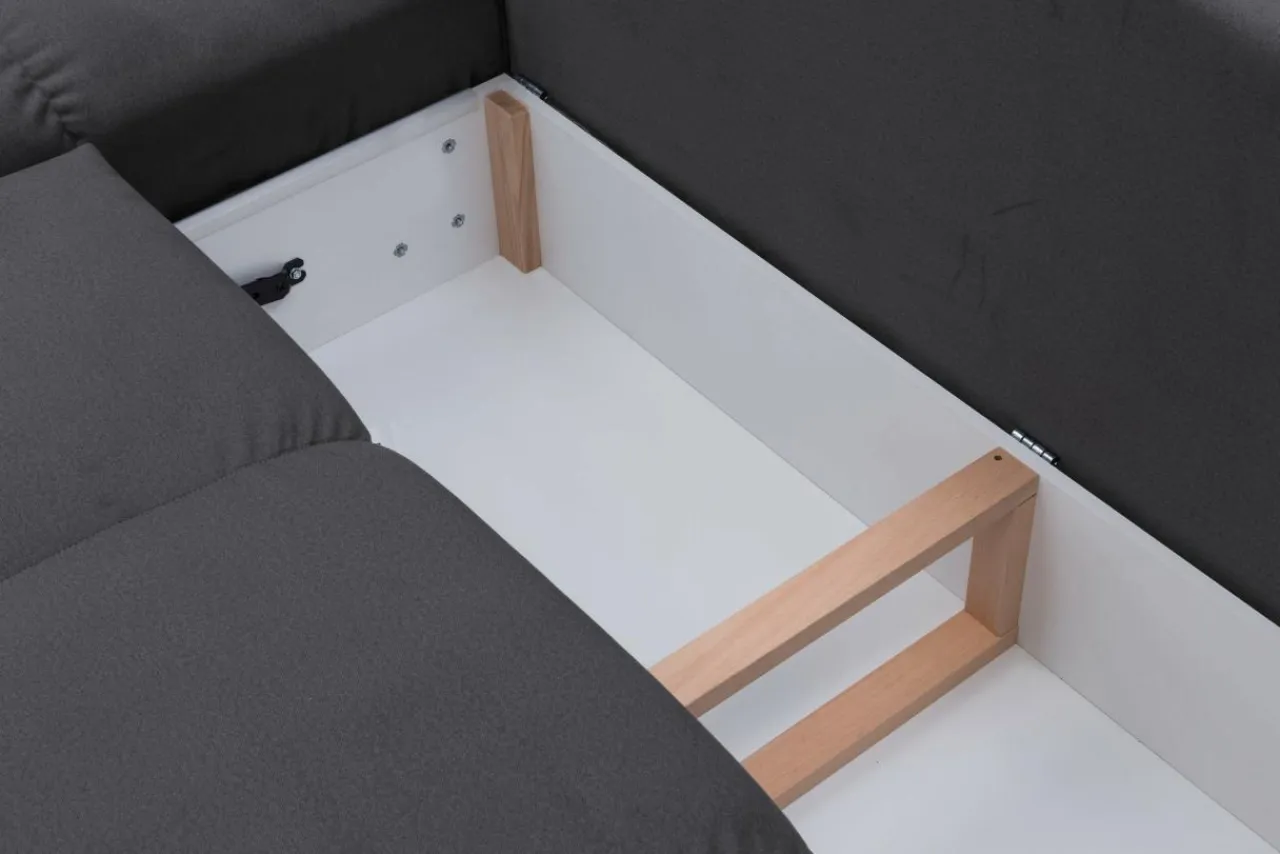 - Pojemnik na pościel znajduje się pod siedziskiem, więc możesz wyciągnąć pościel w trakcie rozkładania łóżka.