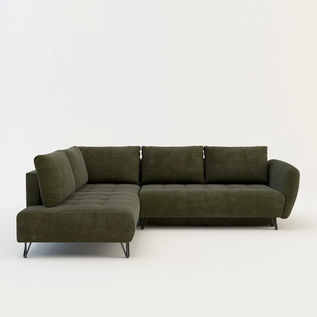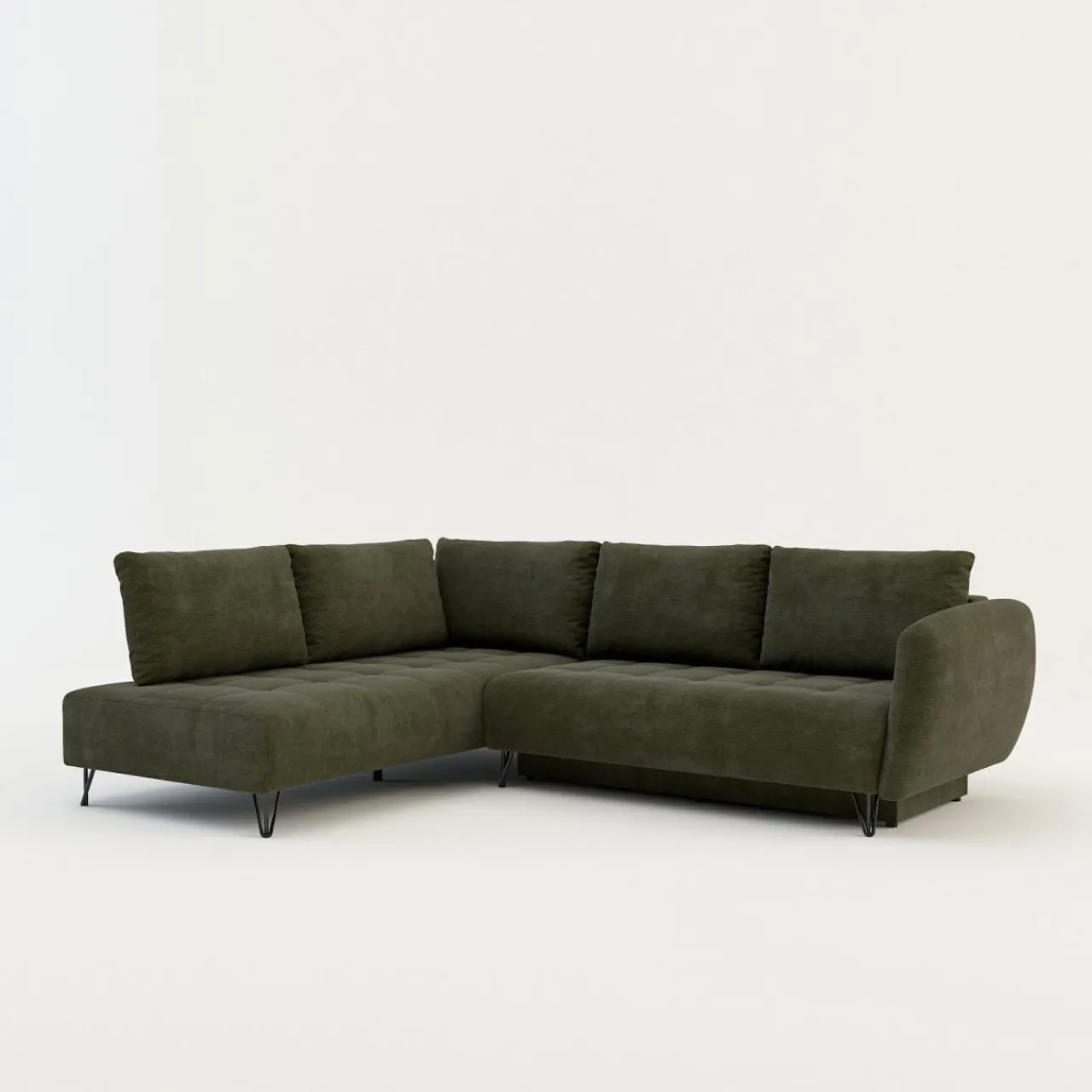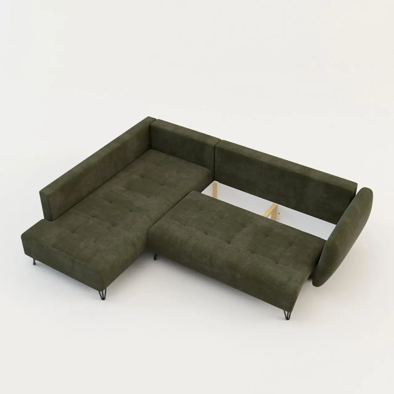 - W pojemniku pod siedziskiem wygodnie przechowasz pościel, koce lub inne domowe tekstylia. Dostęp do niego uzyskasz podczas rozkładania narożnika.