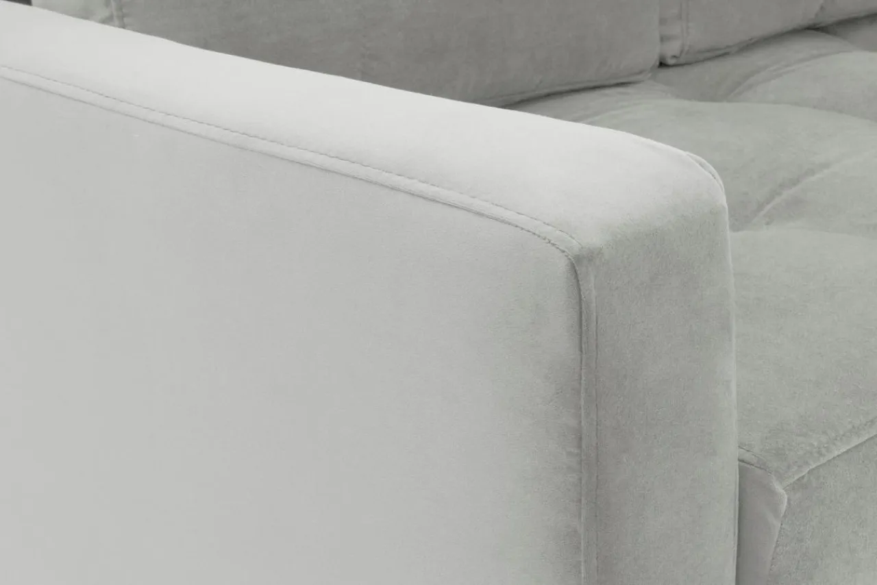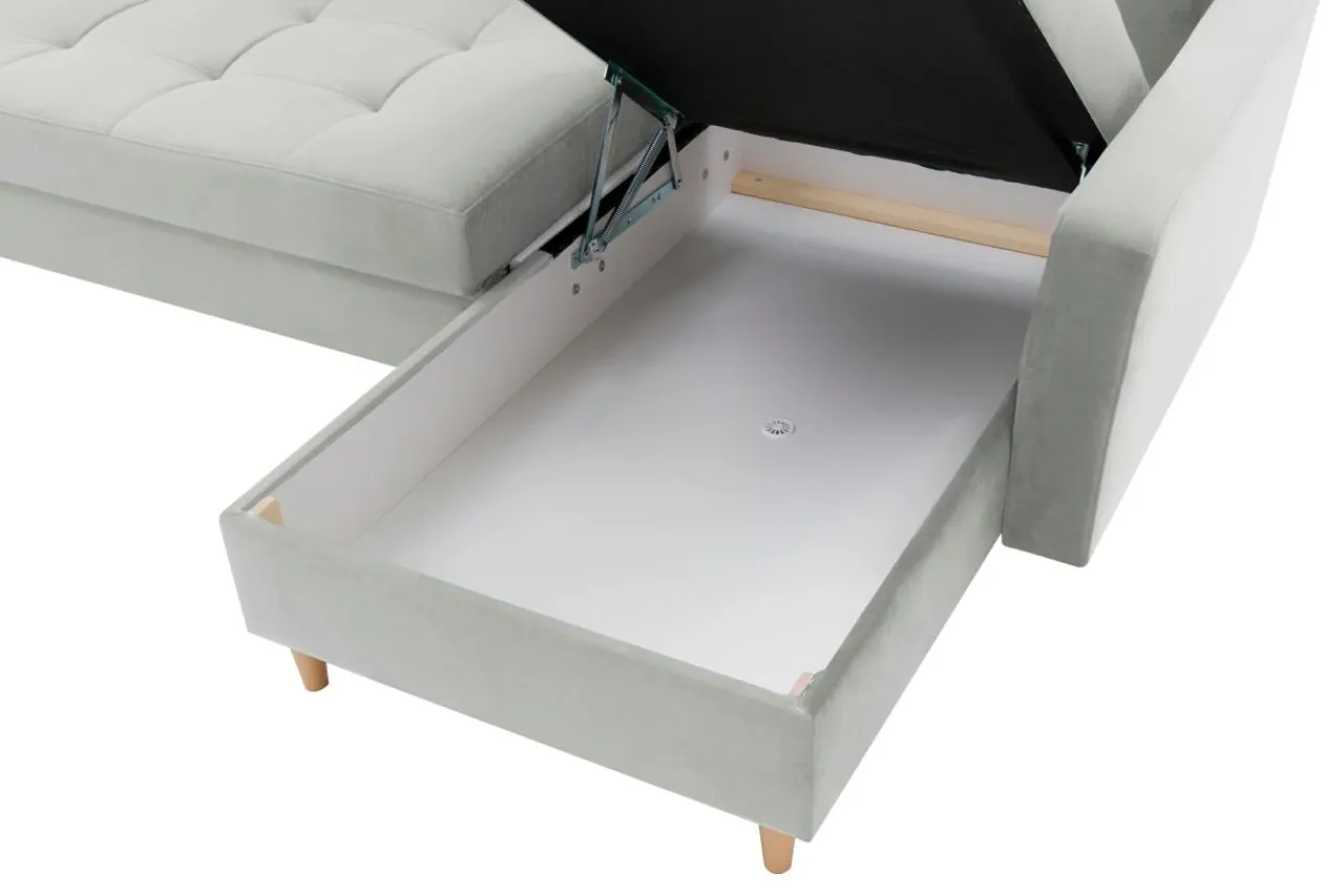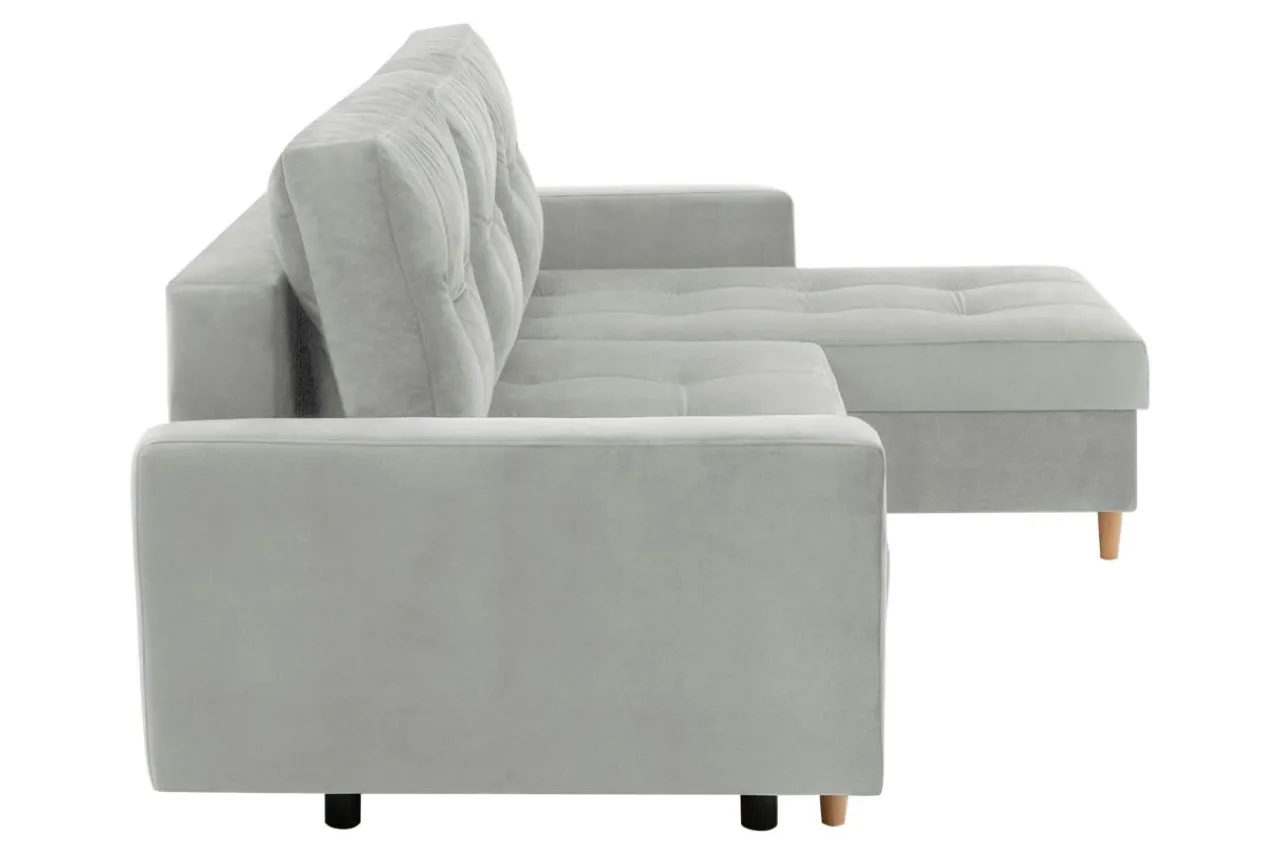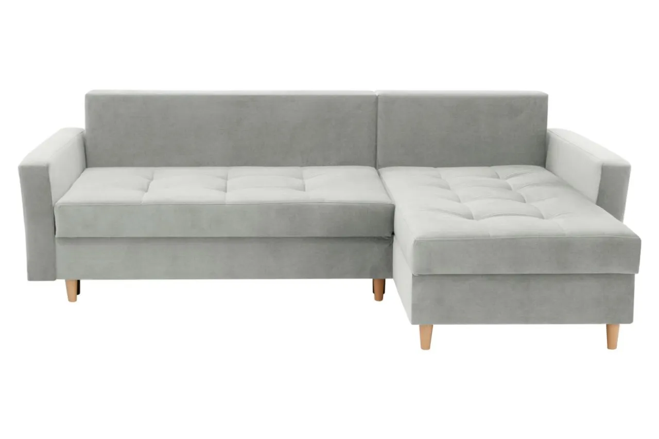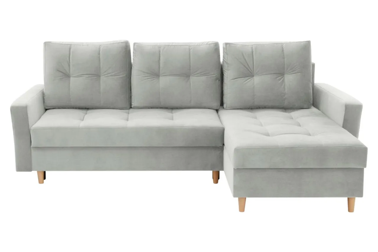 - Szary kolor i drewniane nóżki sprawiają, że narożnik pięknie będzie komponował się w pomieszczeniach w stylu skandynawskim.