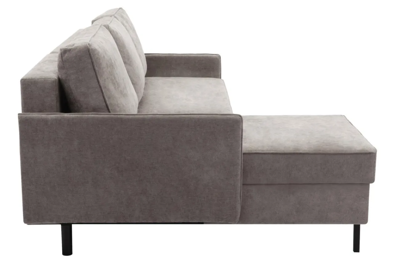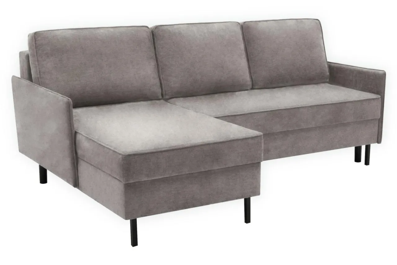 - Metalowe, czarne nóżki sprawiają, że narożnik dobrze zaprezentuje się w loftowej aranżacji w otoczeniu drewna o ciepłym odcieniu i czarnych dodatków.