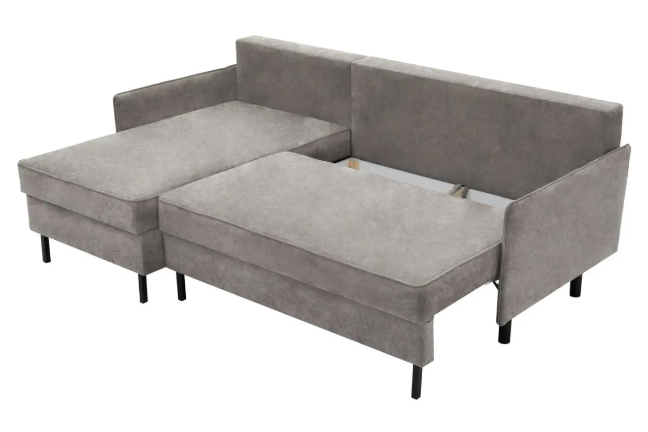 - 1 pojemnik znajduje się pod siedziskiem – to idealne miejsce na pościel, bo dostaniesz się do niej podczas rozkładania narożnika.