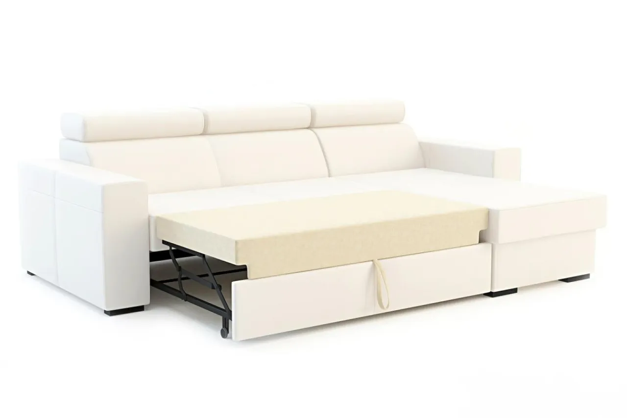 Stelaż pod siedziskiem wysuwamy i podnosimy za pomocą uchwytu. Mebel nie wymaga odsuwania od ściany. Idealny do okazjonalnego spania.