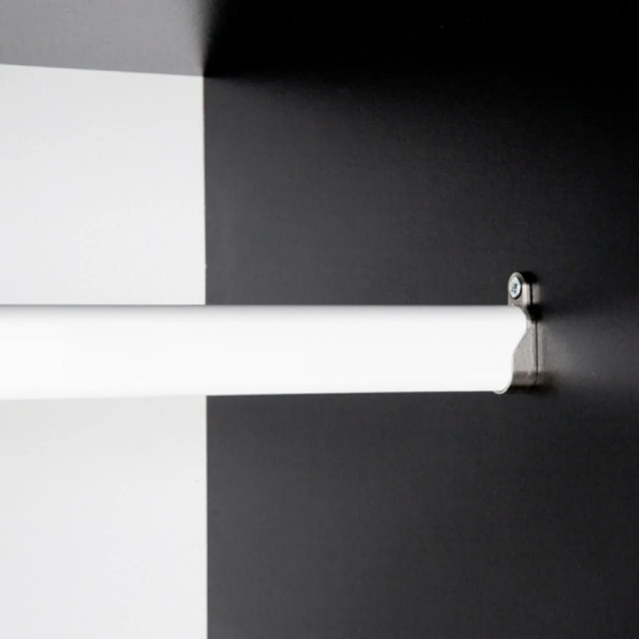 - Z prawej części szafy znajduje się drążek, który pomieści odzież wierzchnią oraz wyprasowane ubrania.