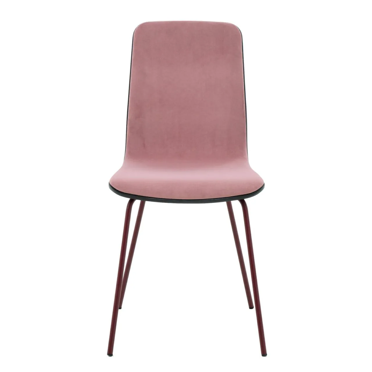 - Krzesło posiada miłą w dotyku welurową tapicerkę w kolorze pudrowy róż.