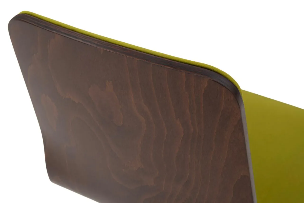 - Siedzisko i oparcie krzesła wykonano ze sklejki. Sklejkę pokryto bejcą w kolorze orzecha.
