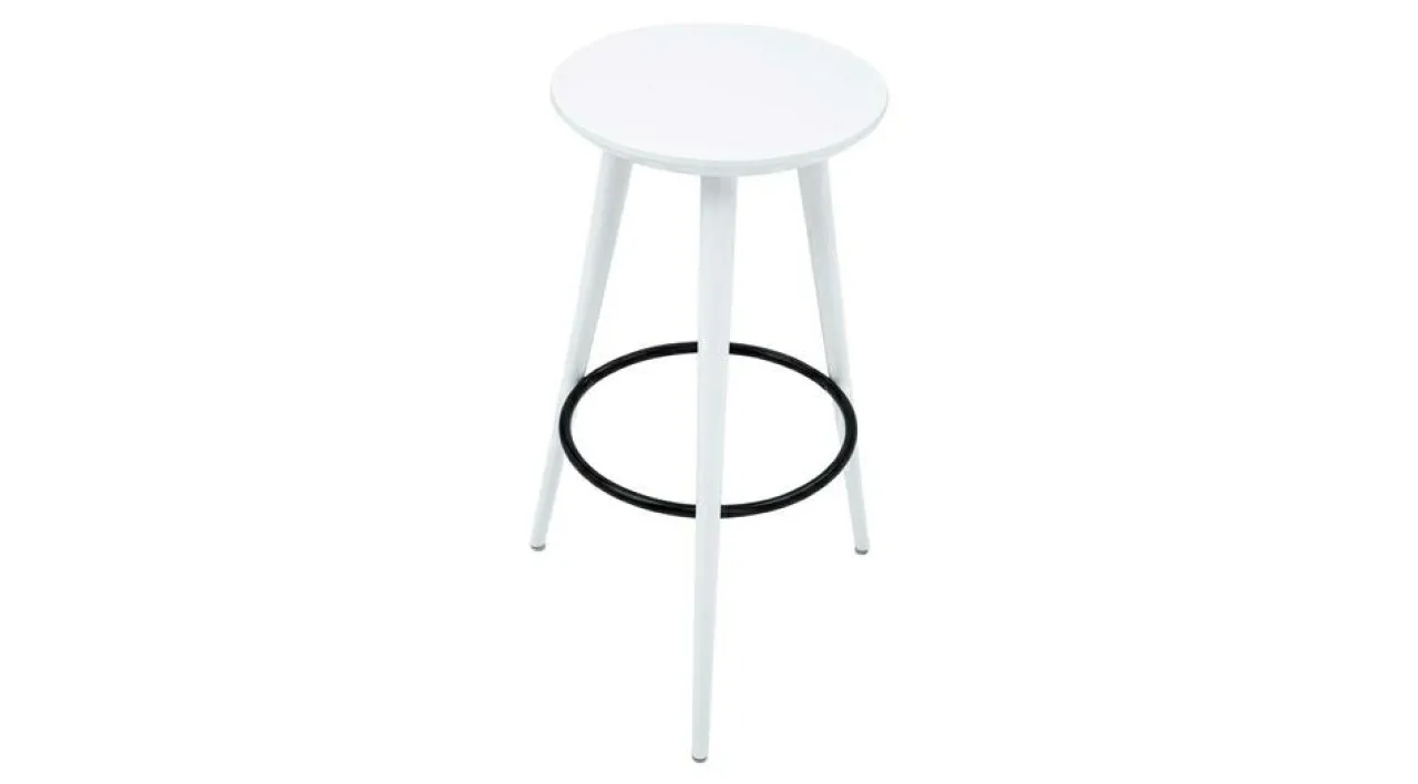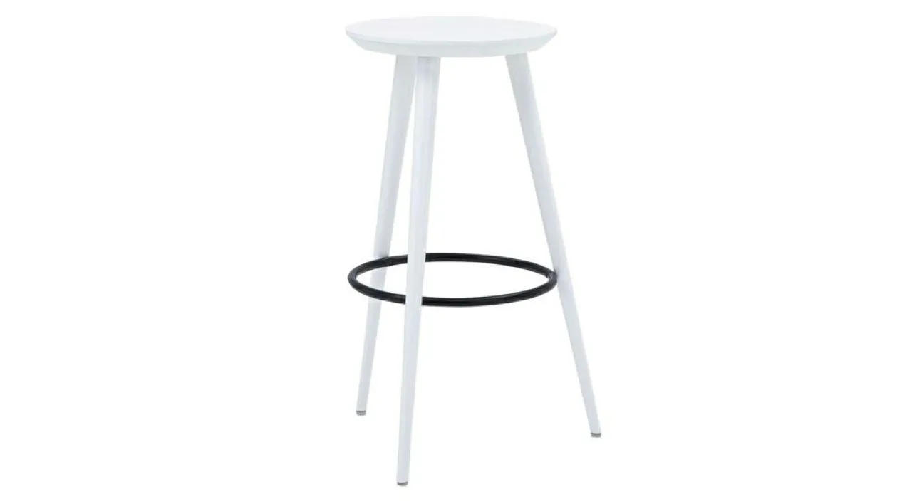 - Stelaż taboretu białego GREGOR wykonano z drewna bukowego, a okrągłe siedzisko – ze sklejki.