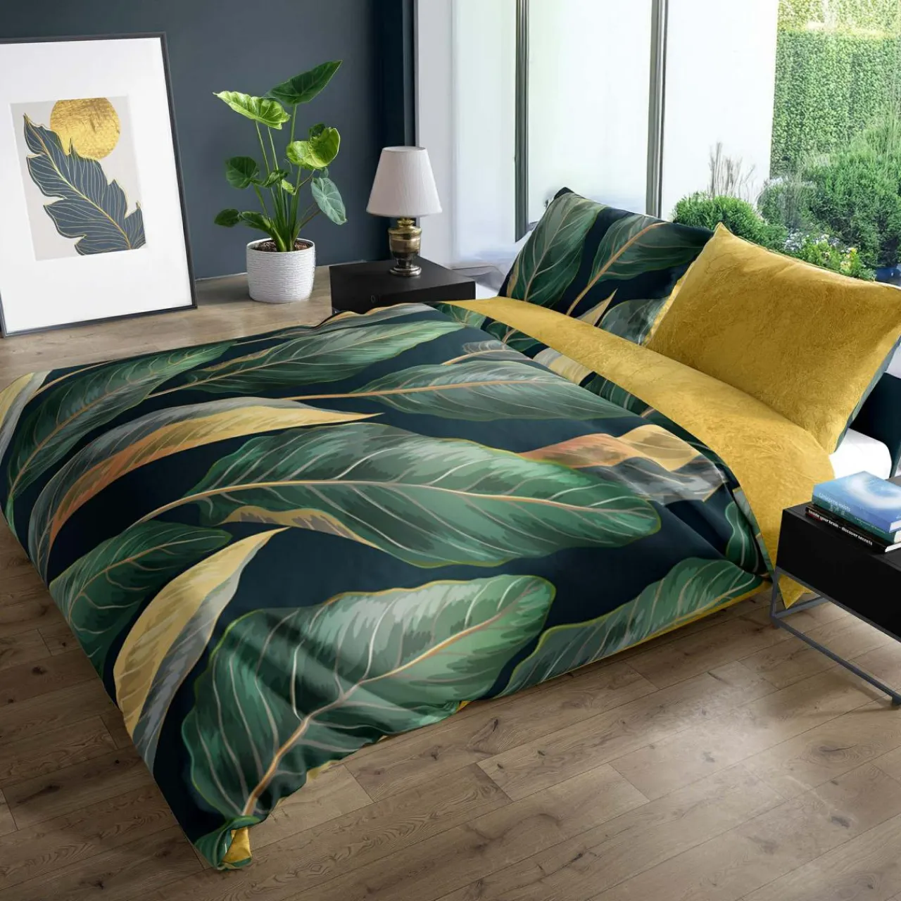Z pościelą z satyny bawełnianej z motywem liści strelicji sen przywitasz w zachwycających tropikach.