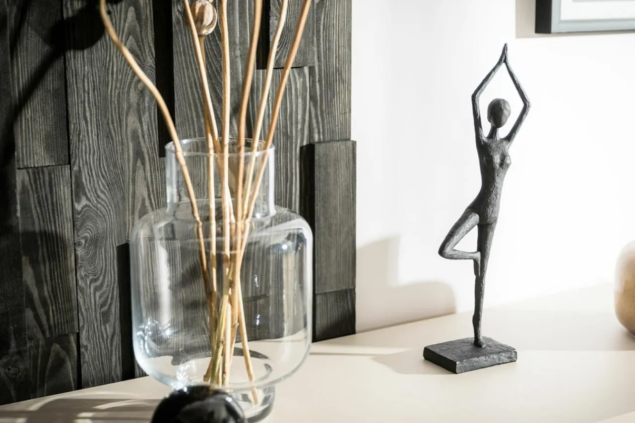 - Przedstawia „pozycję drzewa” – stanie na jednej nodze z mocno wyprostowanym kręgosłupem uczy stabilności i równowagi, również też emocjonalnej. Jeśli ćwiczysz jogę i lubisz virksasanę, to figurka stojącej JOGINKI podkreśli Twoje upodobania.