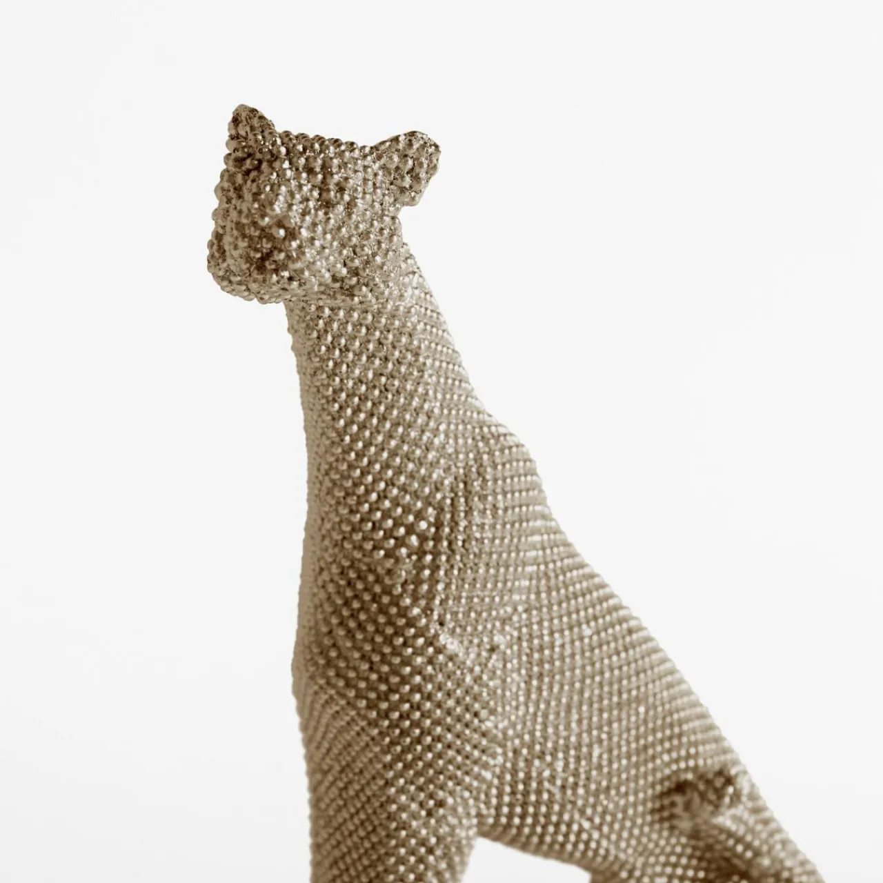 Figurka dekoracyjna PANTERA SIEDZĄCA to elegancki element wystroju wnętrza, który ucieszy każdego miłośnika ciekawych rozwiązań. Wykonana z naturalnej żywicy jest odporna na stłuczenia, a jej złoty kolor nadaje jej luksusowego wyglądu.