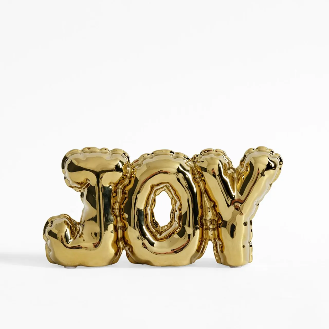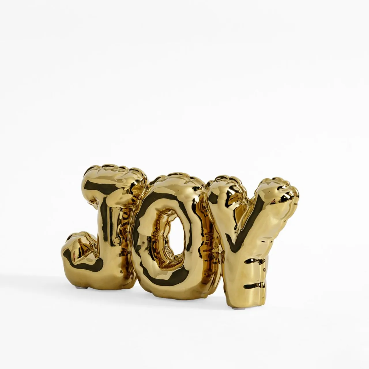 Dekoracja napis JOY jest nietuzinkowym dodatkiem do Twojego salonu lub przedpokoju. Wygląd przypominający złoty balon wyróżni się i przyciągnie uwagę gości.