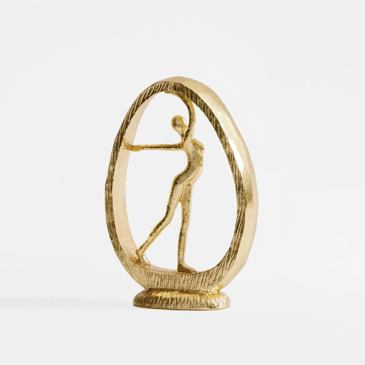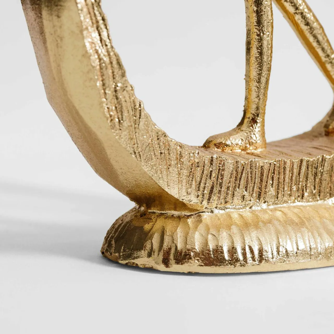 Figurka dekoracyjna gimnastyczki wykończona w złotym połysku emanuje elegancją, idealną do wnętrz w stylu glamour. Wyrzeźbione ciało oraz zaokrąglona rama nadają jej wyjątkowego charakteru. Wygięta postura tworzy wokół siebie aurę siły i harmonii z duszą.