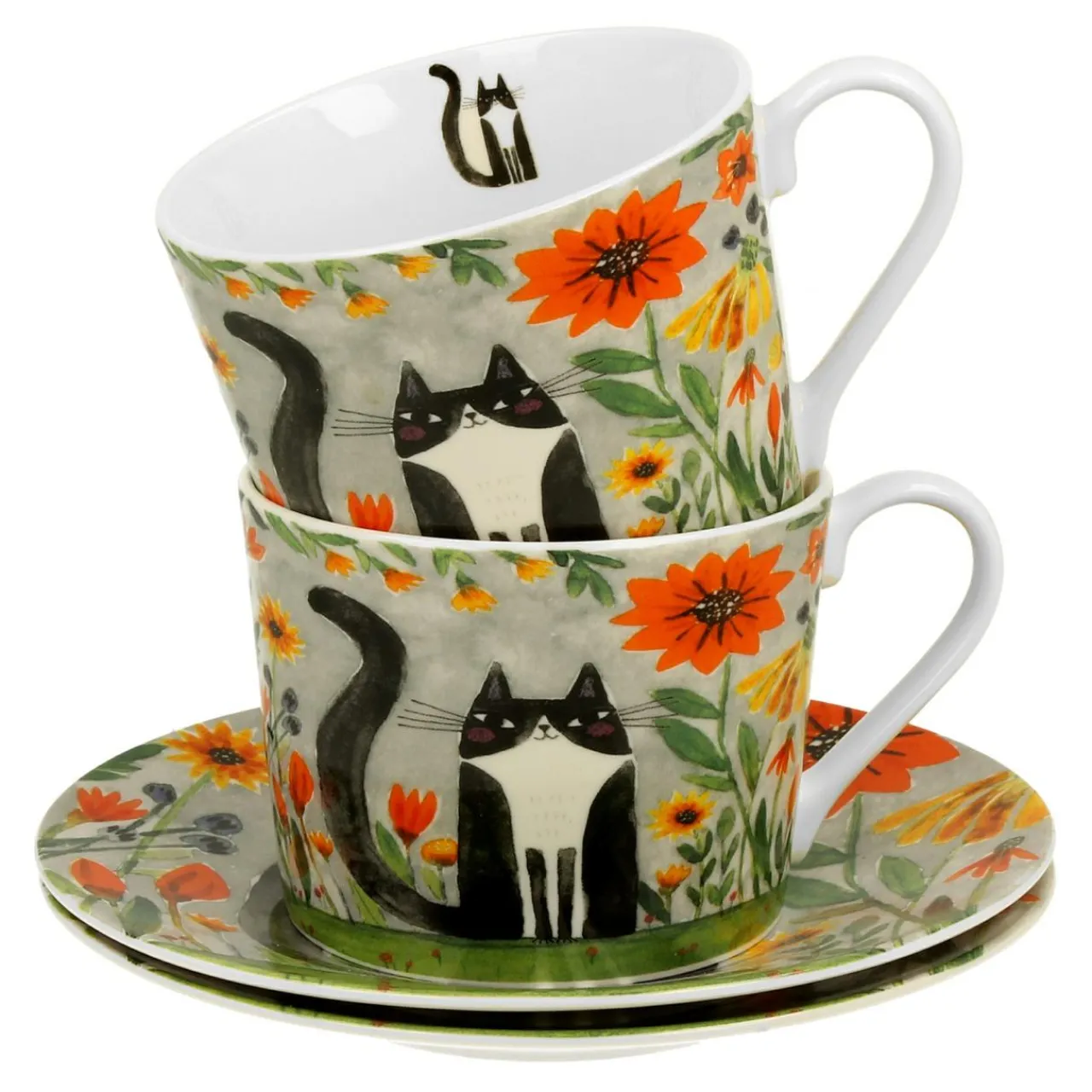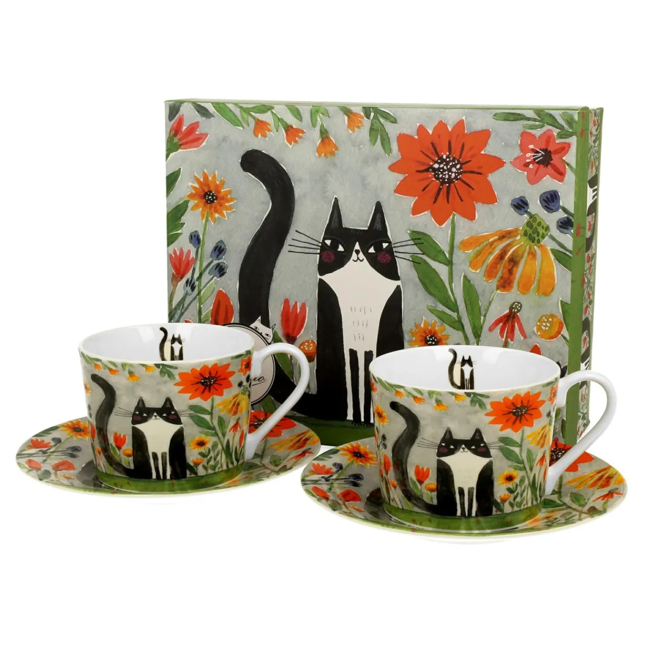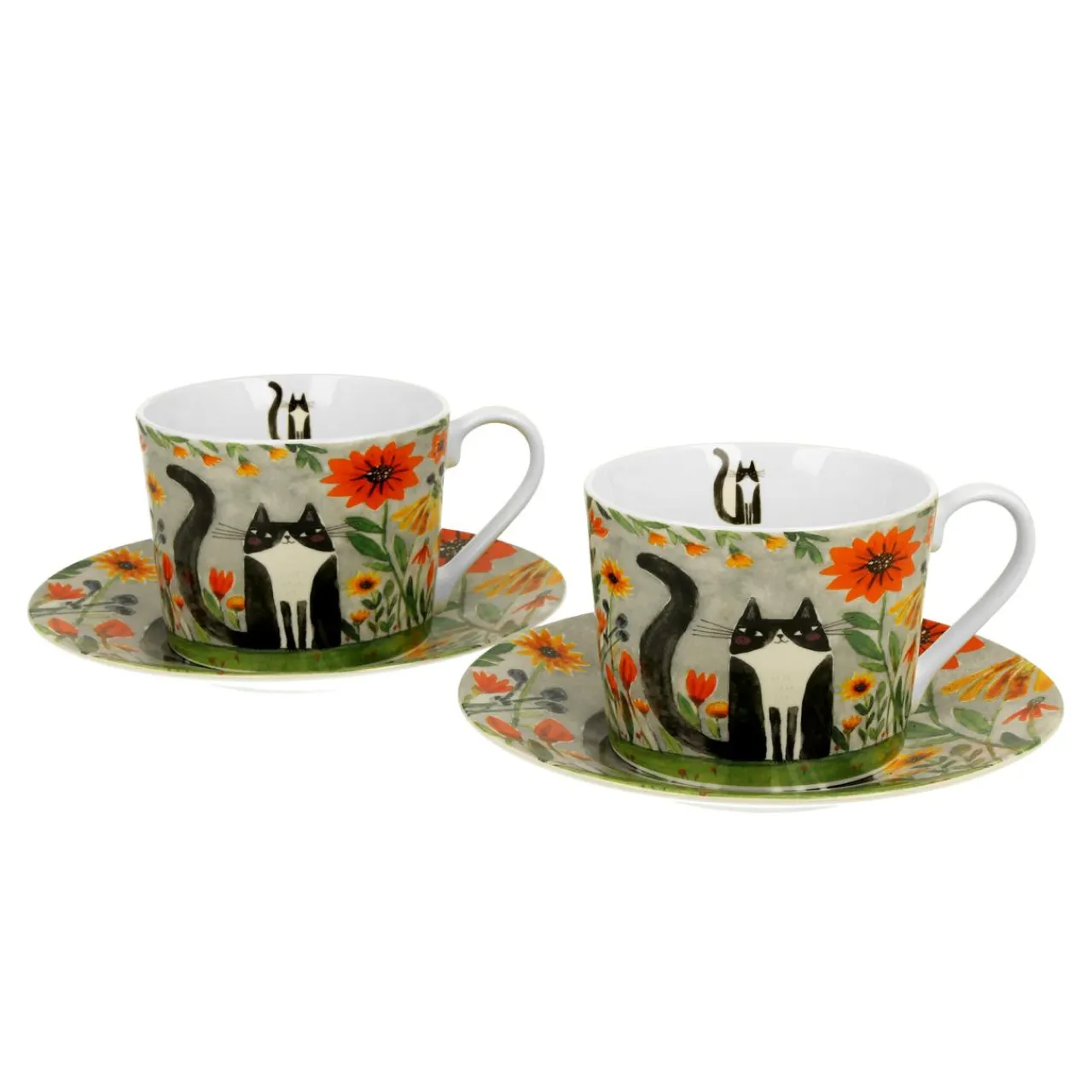 Filiżanki I Spodki| Komplet 2 filiżanek ze spodkami KOCI ŚWIAT ŁĄKA 230 ml