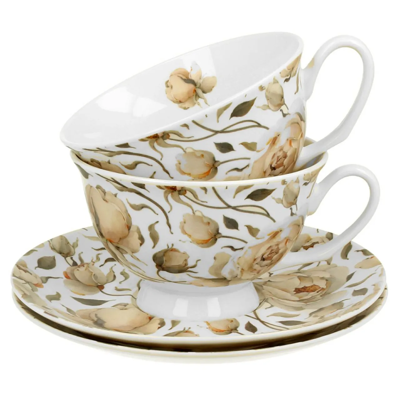 Filiżanki I Spodki| Komplet 2 filiżanek ze spodkami ROYAL ENGLISH ROSES WHITE 250 ml