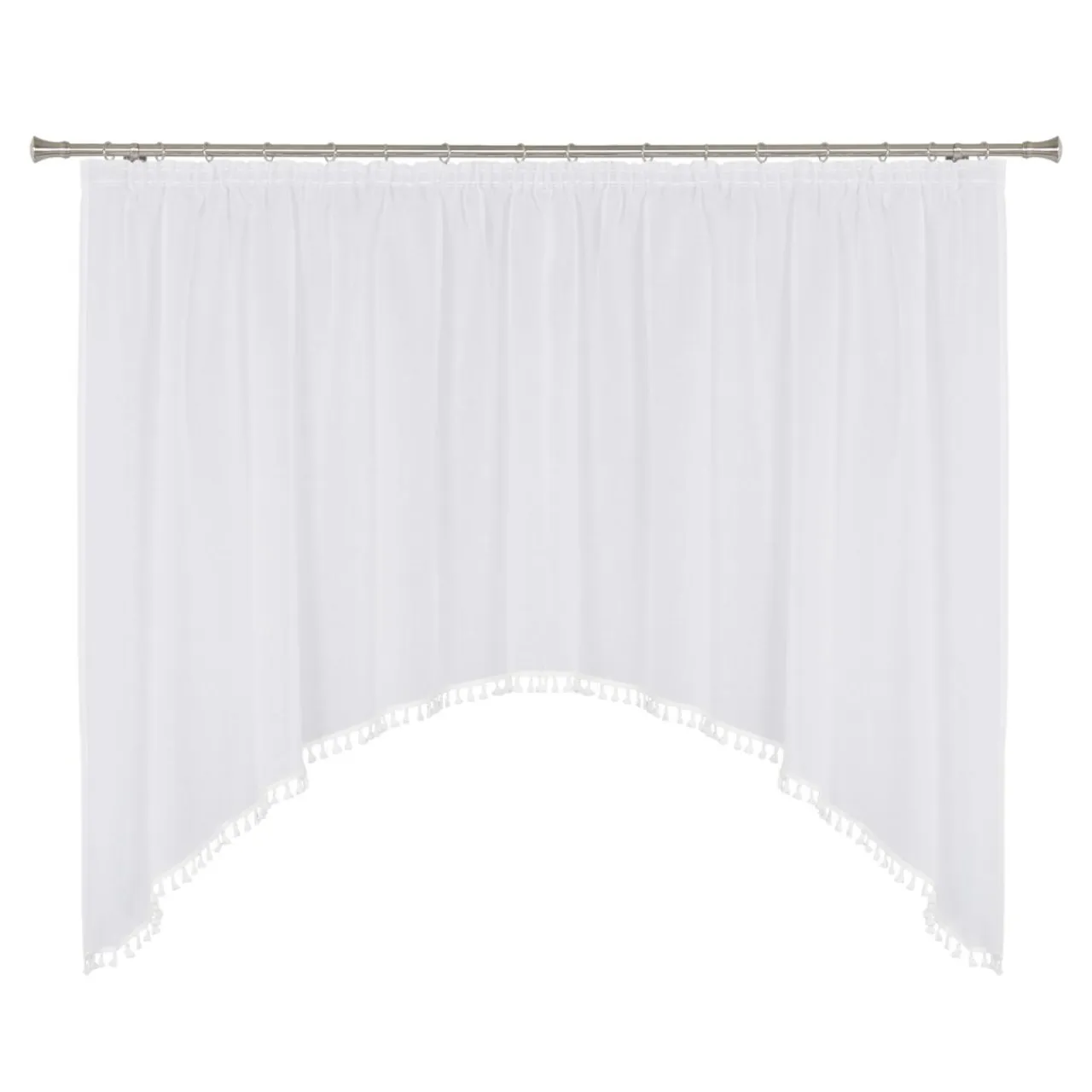 Ponad to firana jest naszyta na taśmę marszczącą, możesz dopasować jej szerokość do szerokości okna – tworząc własną aranżację.