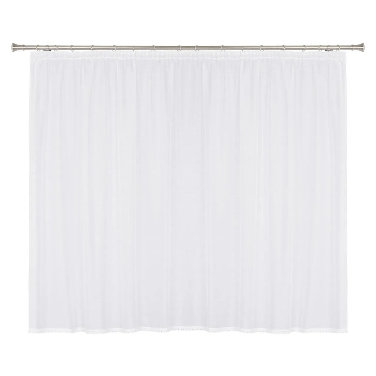 Firana jest naszyta na taśmę marszczącą, więc bez problemu dopasujesz jej szerokość do swojego okna – tworząc ozdobne plisy.