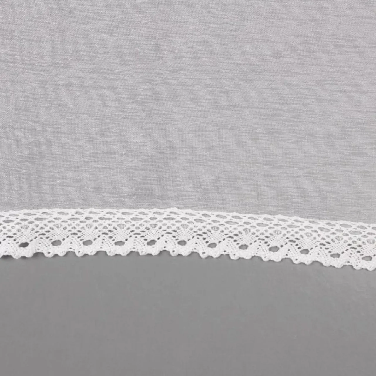 - Dół firany ozdobiono koronką o subtelnym wzorze.