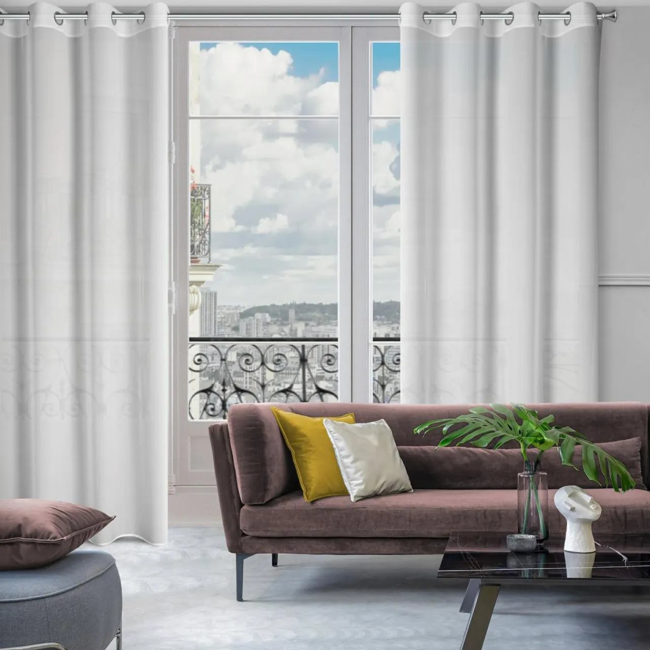 - Gładki, biały materiał sprawdzi się jako subtelna dekoracja salonu lub sypialni w stylu minimalistycznym lub skandynawskim.