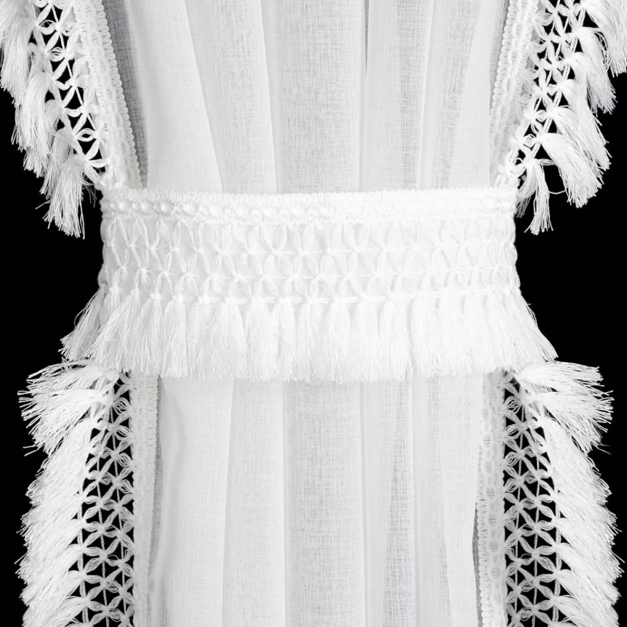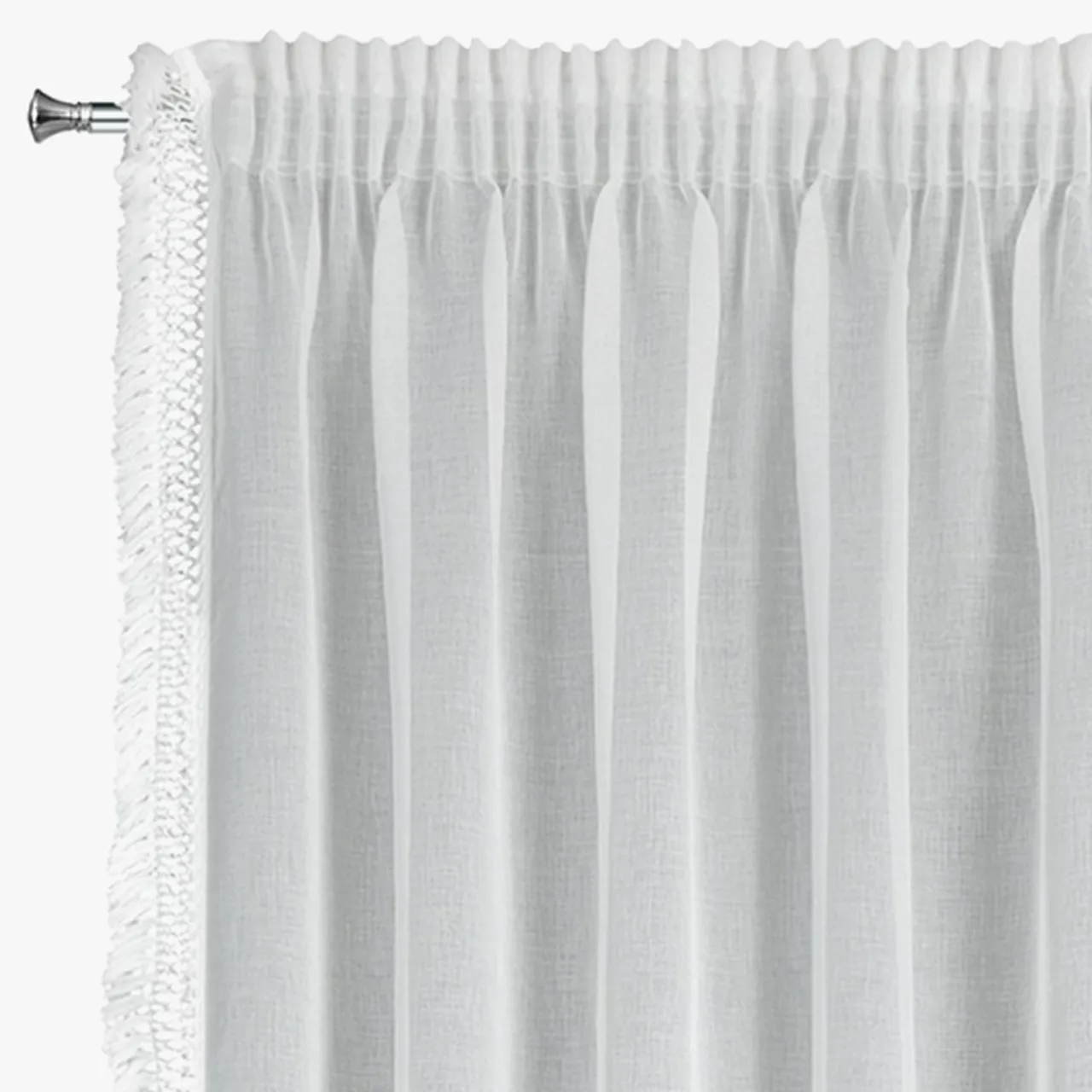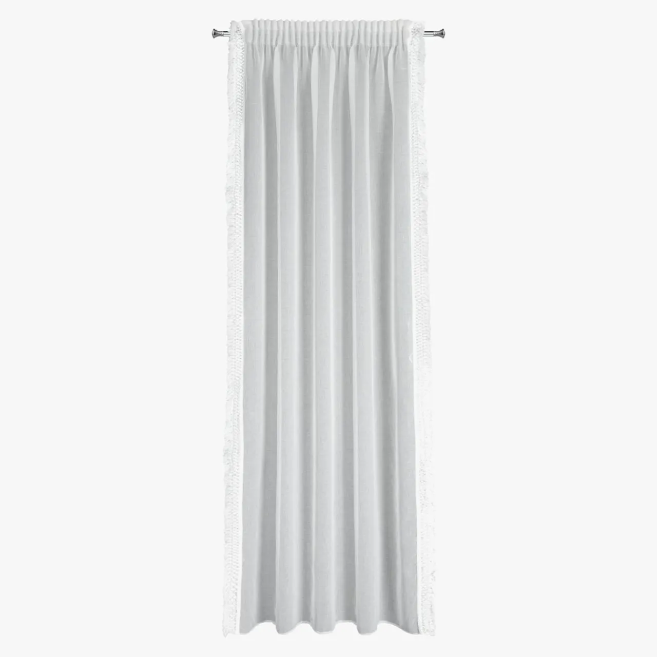 Frędzle z boku firany sprawią, że wnętrze zyska subtelny i naturalny akcent.