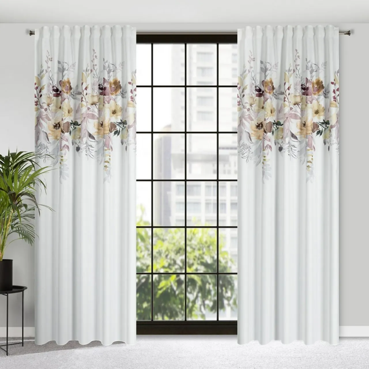 - Zasłona w kwiaty SENDI jest gotowa do zawieszenia za pomocą żabek i agrafek.