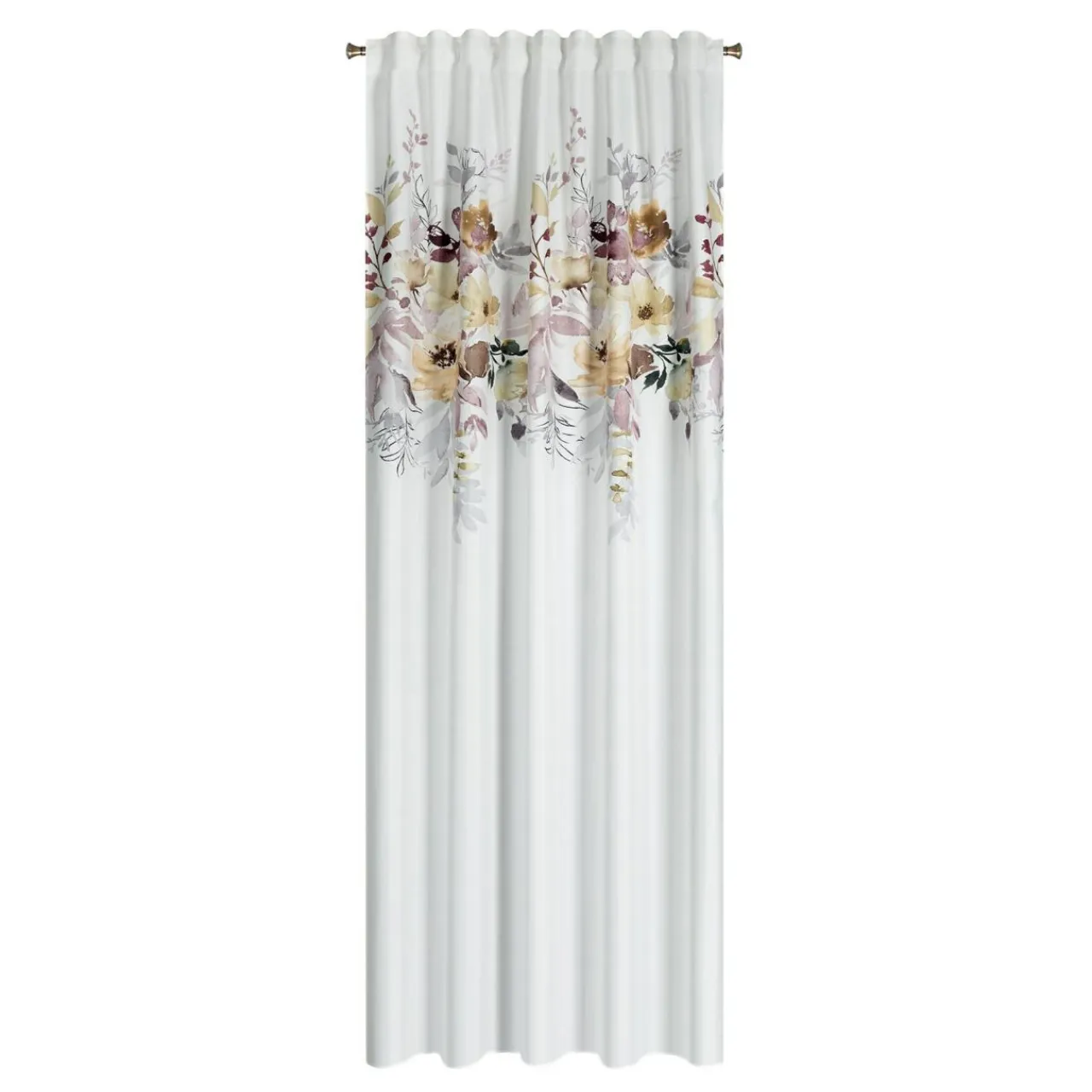 - Pod taśmą znajdują się dodatkowe ukryte szelki, która pozwalają powiesić zasłonę w kwiaty SENDI na karniszu z drążkiem.