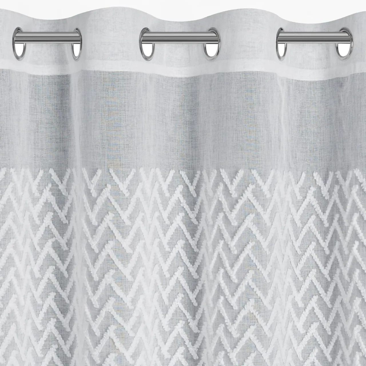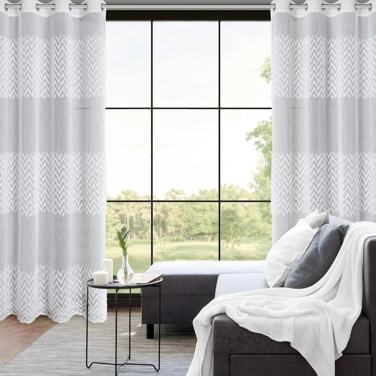 Zwiewna zasłona na przelotkach ESTERI z dekoracyjnym wzorem nada wnętrzu lekkości i świeżości.