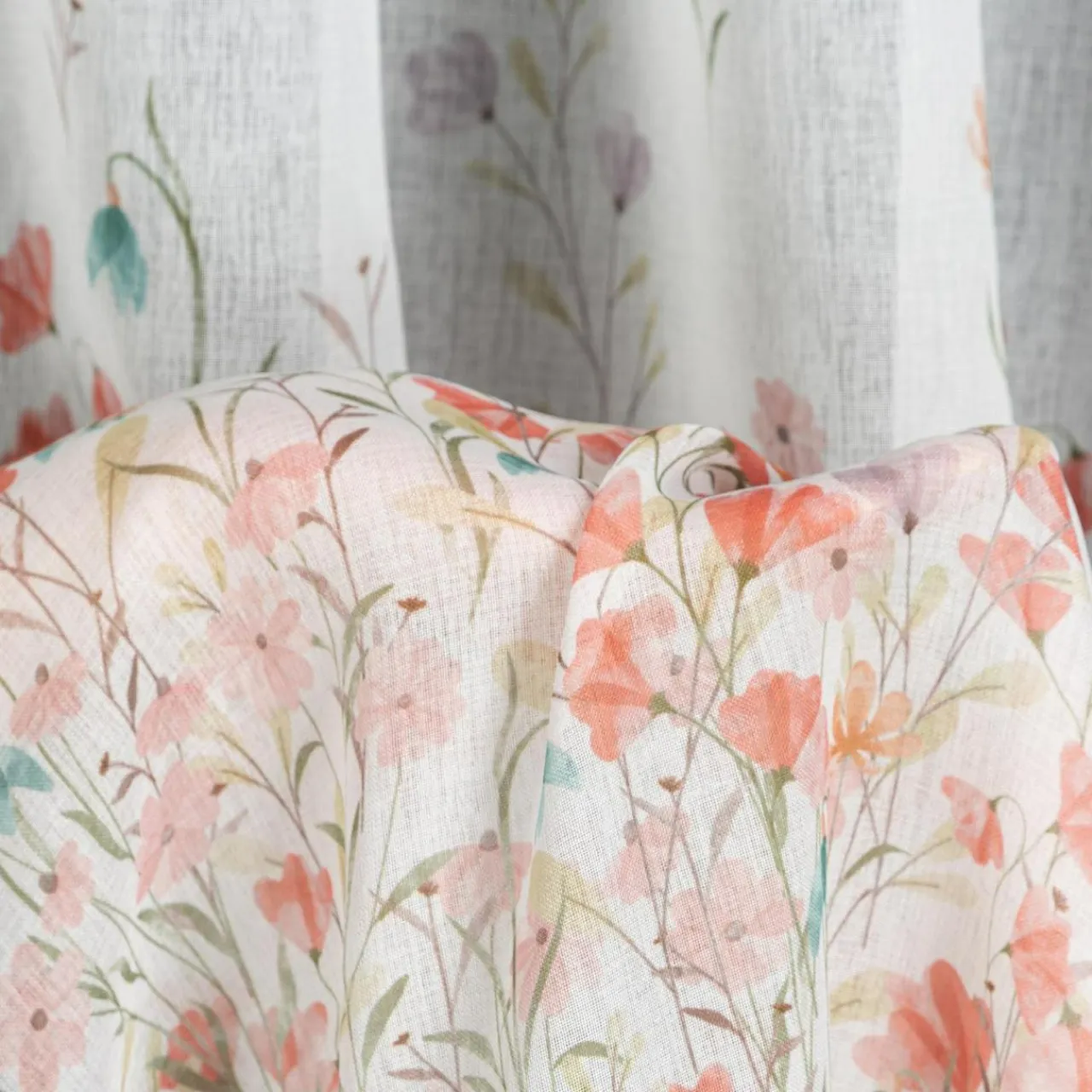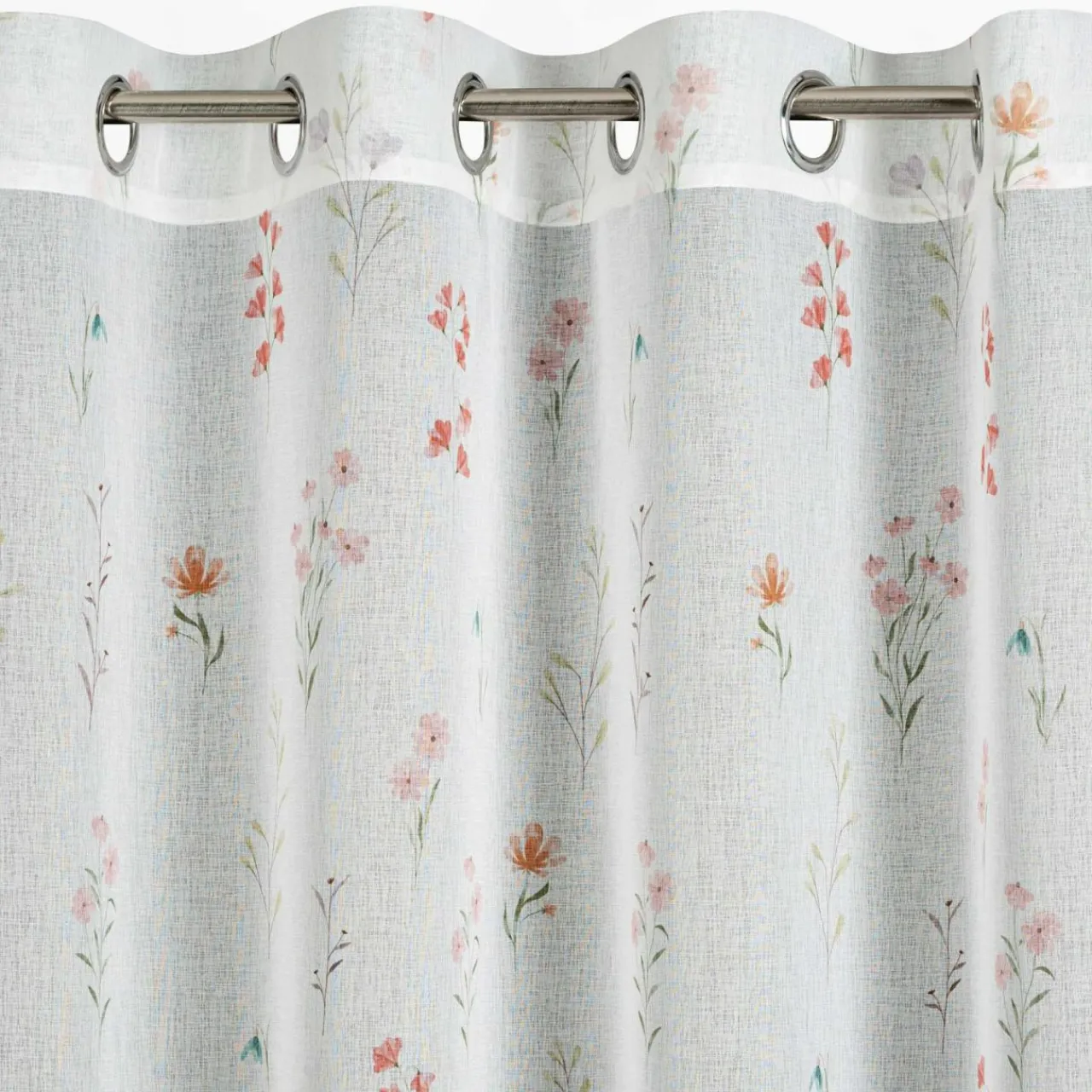 Zasłona na przelotkach SONIA w różowe kwiaty doda wnętrzu wiosennego akcentu.