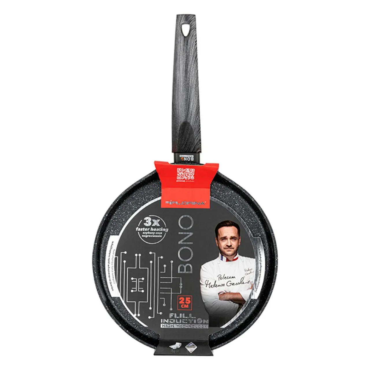 Patelnia naleśnikowa o średnicy 25 cm jest częścią kolekcji BONO BY MATEUSZ GESSLER marki FLORINA, która obejmuje patelnie do różnych zastosowań oraz garnki – skompletuj idealny zestaw, odpowiadający Twoim potrzebom!