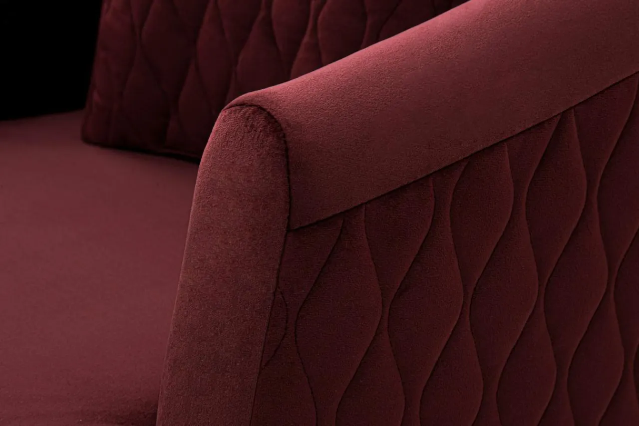 - Fotel wykończono przyjemną w dotyku, miękką tkaniną MAGIC VELVET o bordowym odcieniu.